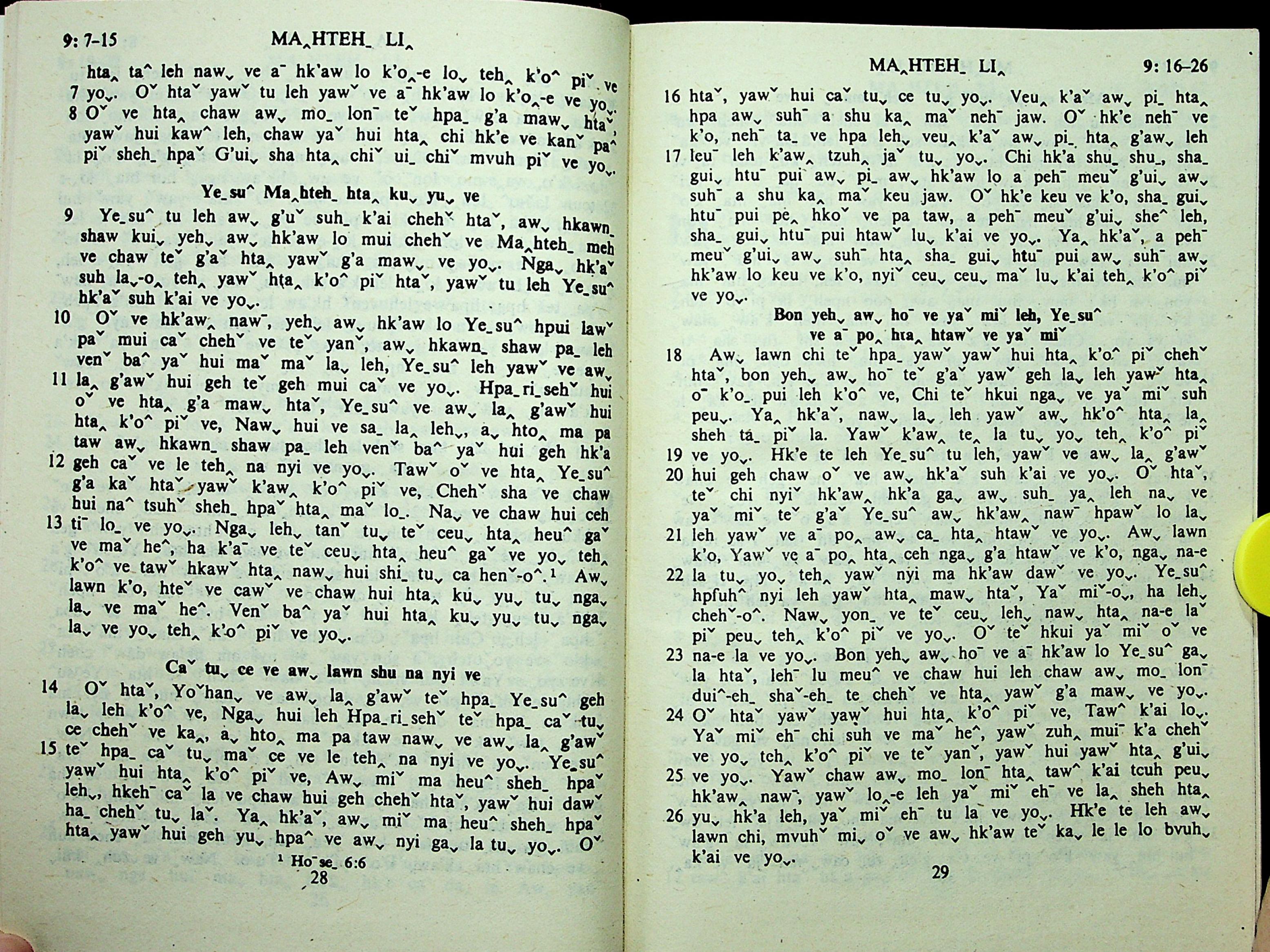 1985年拉祜文新约全书 马太福音 9 章 7 节到 9 章 26 节