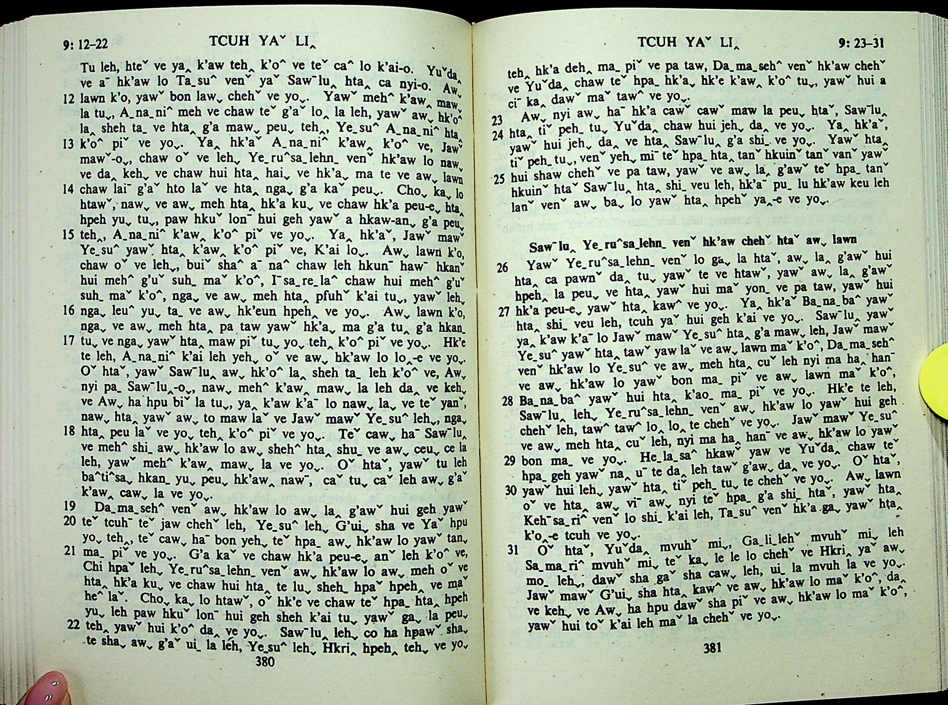 1985年拉祜文新约全书 使徒行传 9 章 12 节到 9 章 31 节
