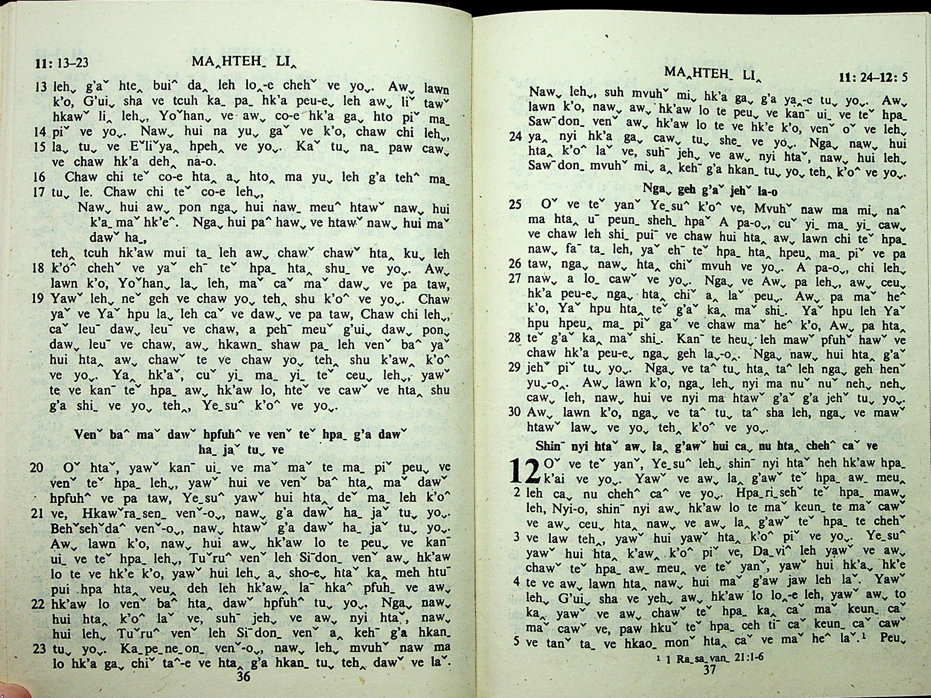 1985年拉祜文新约全书 马太福音 11 章 13 节到 12 章 5 节