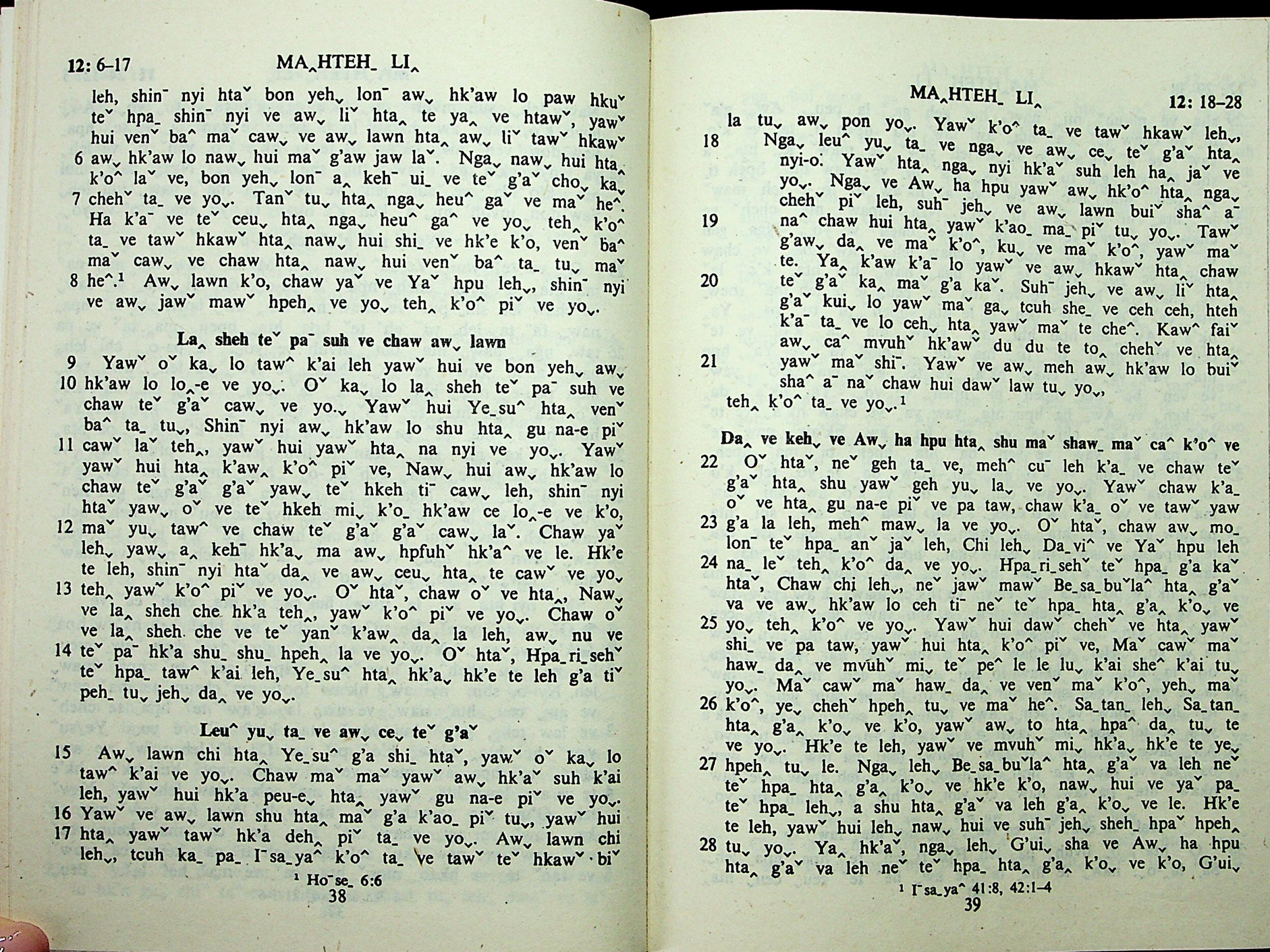 1985年拉祜文新约全书 马太福音 12 章 6 节到 12 章 28 节