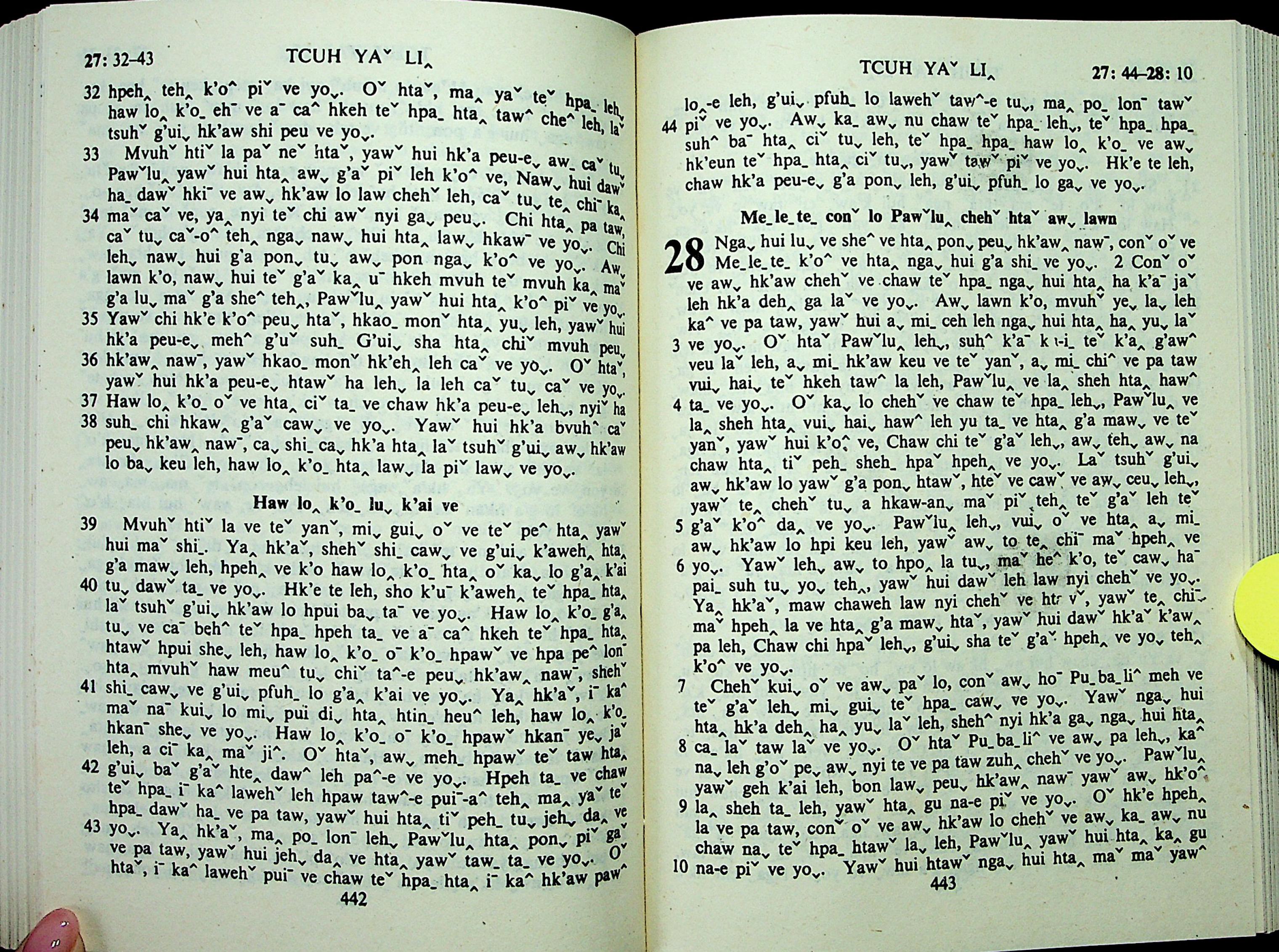 1985年拉祜文新约全书 使徒行传 27 章 32 节到 28 章 10 节