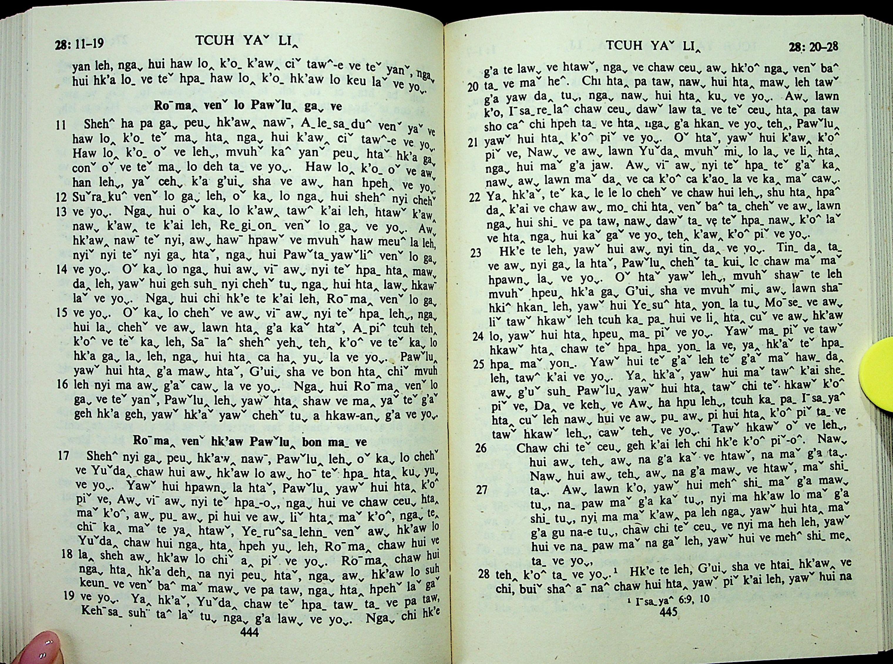 1985年拉祜文新约全书 使徒行传 28 章 11 节到 28 章 28 节