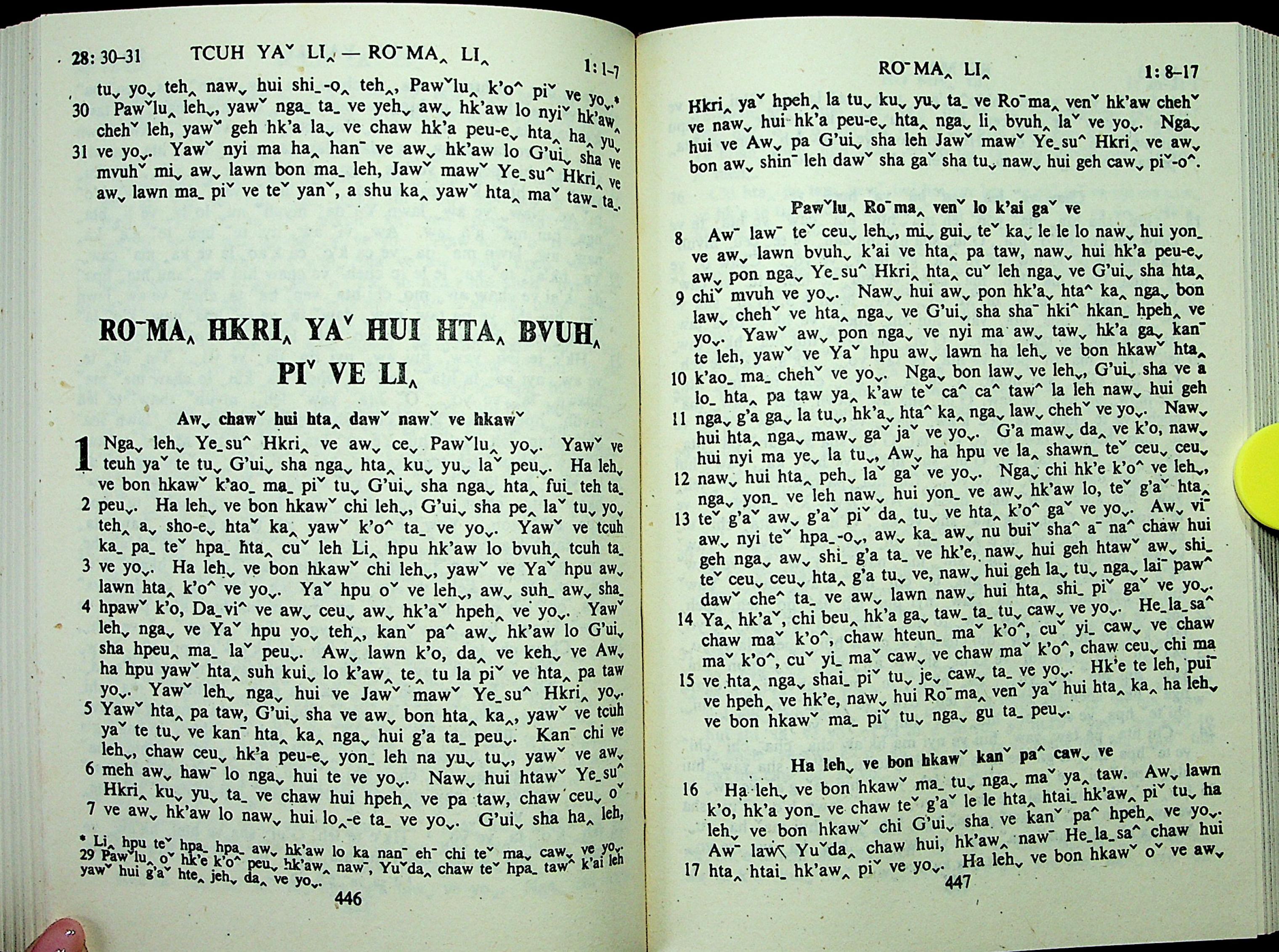 1985年拉祜文新约全书 罗马书 1 章 1 节到 1 章 17 节