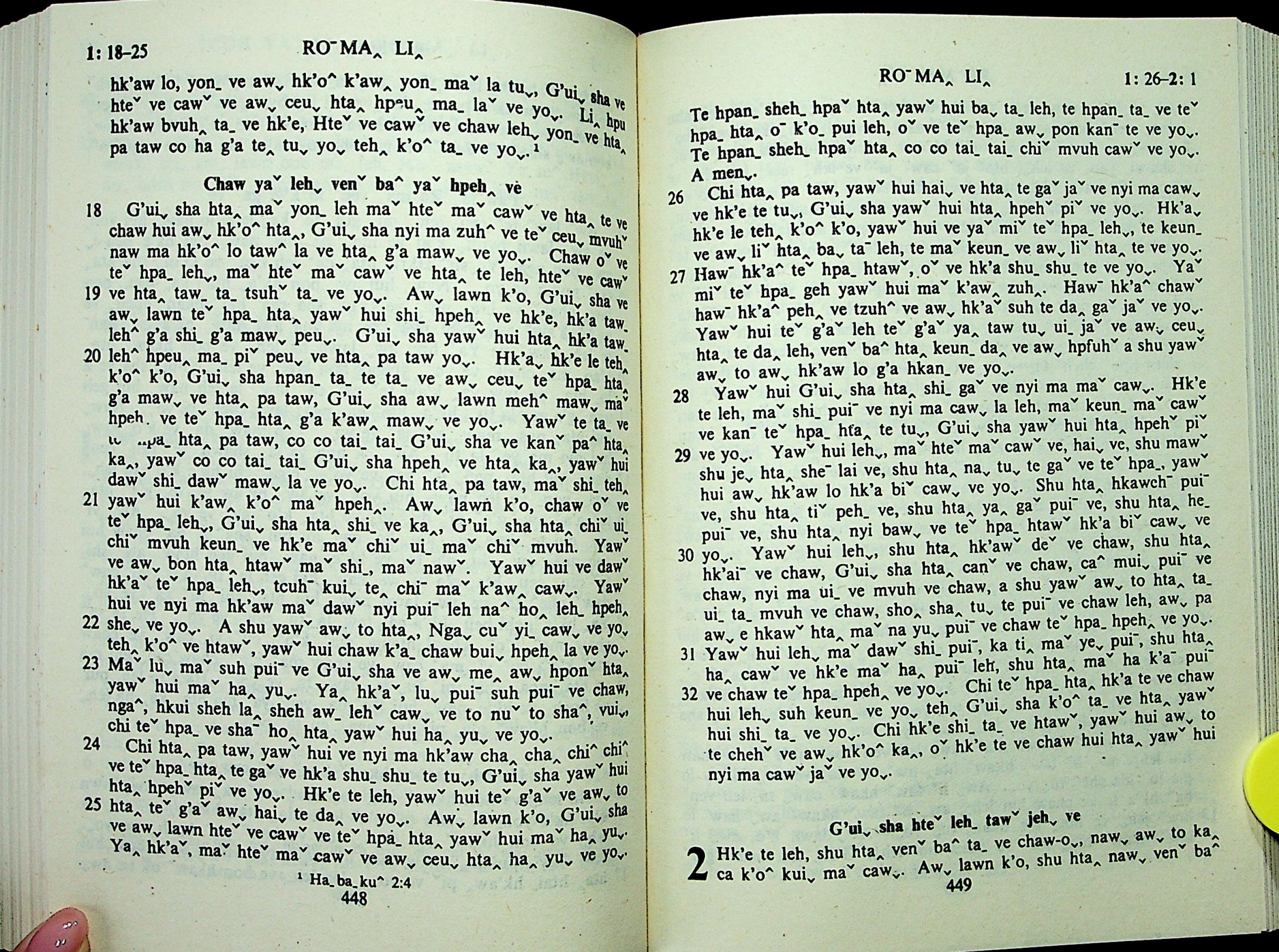 1985年拉祜文新约全书 罗马书 1 章 18 节到 2 章 1 节