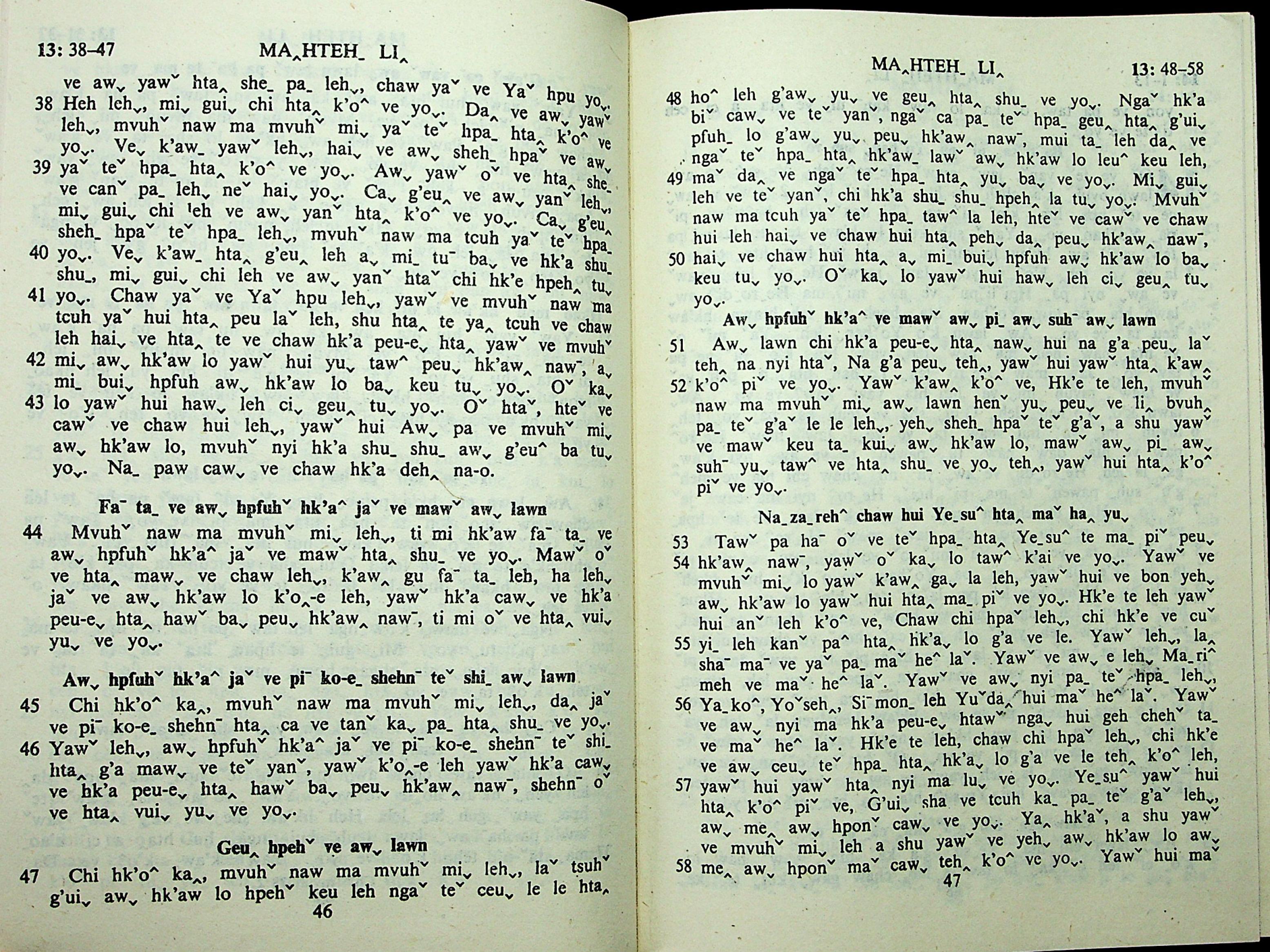 1985年拉祜文新约全书 马太福音 13 章 38 节到 13 章 58 节
