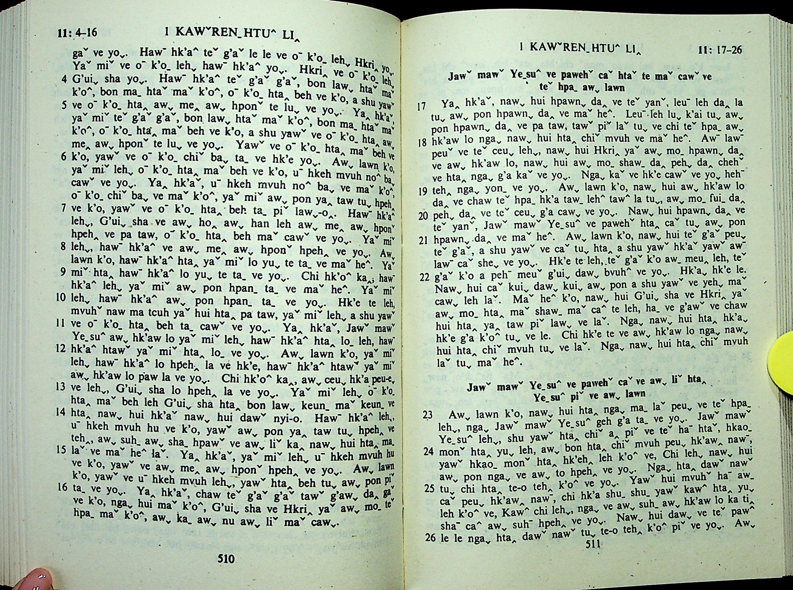 1985年拉祜文新约全书 哥林多前书 11 章 4 节到 11 章 26 节