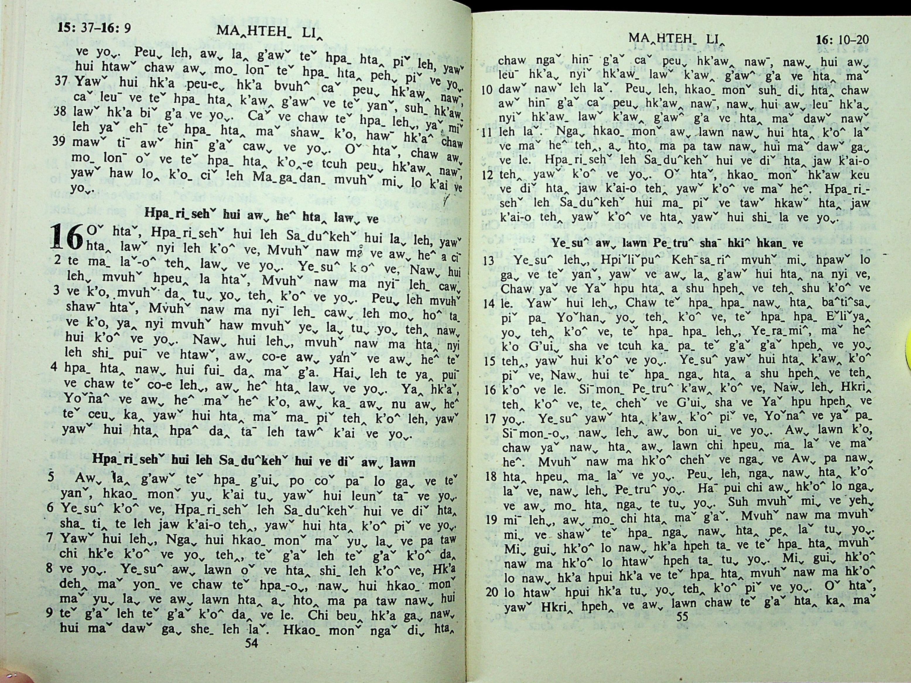 1985年拉祜文新约全书 马太福音 15 章 37 节到 16 章 20 节