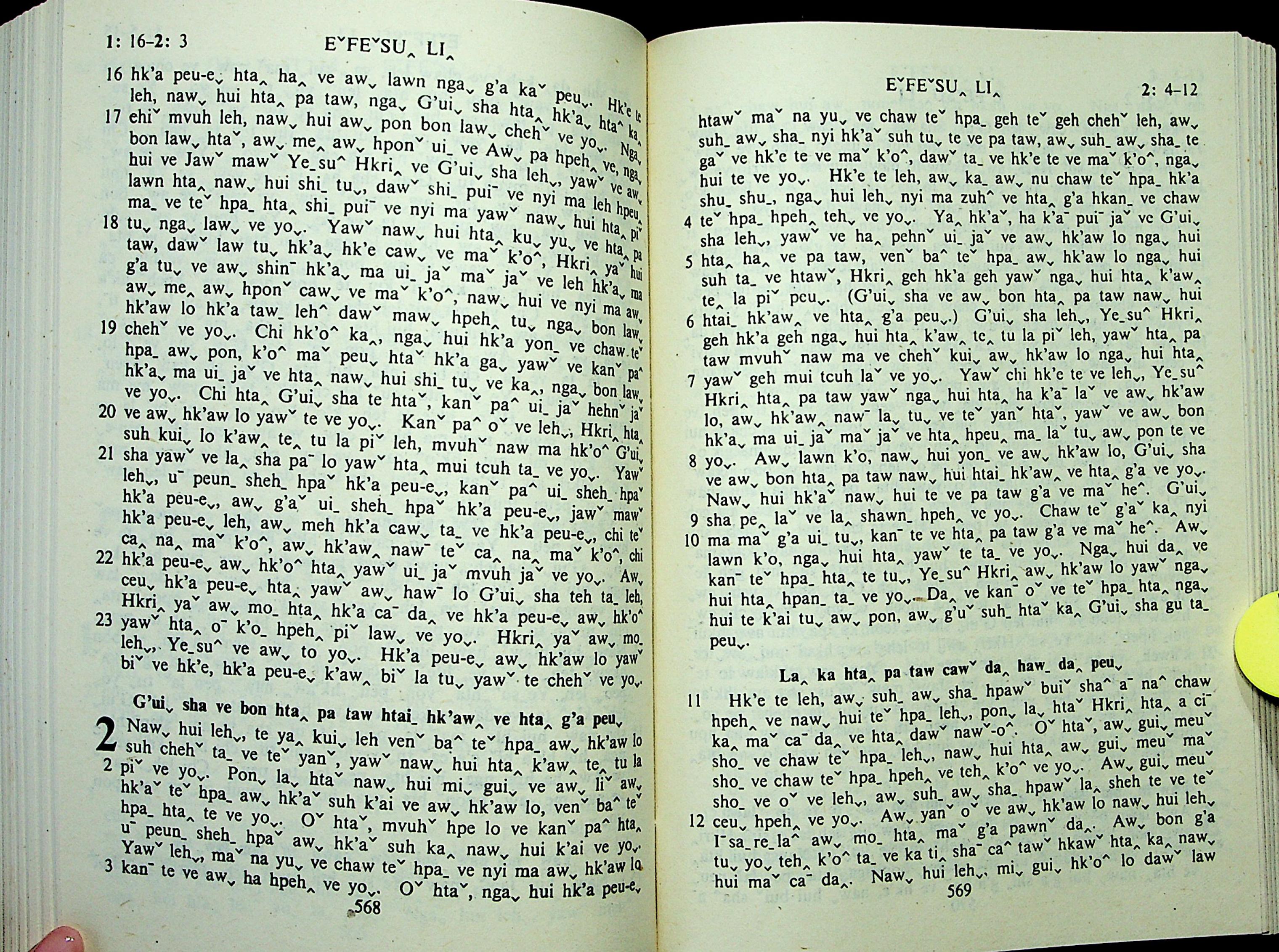 1985年拉祜文新约全书 以弗所书 1 章 16 节到 2 章 12 节