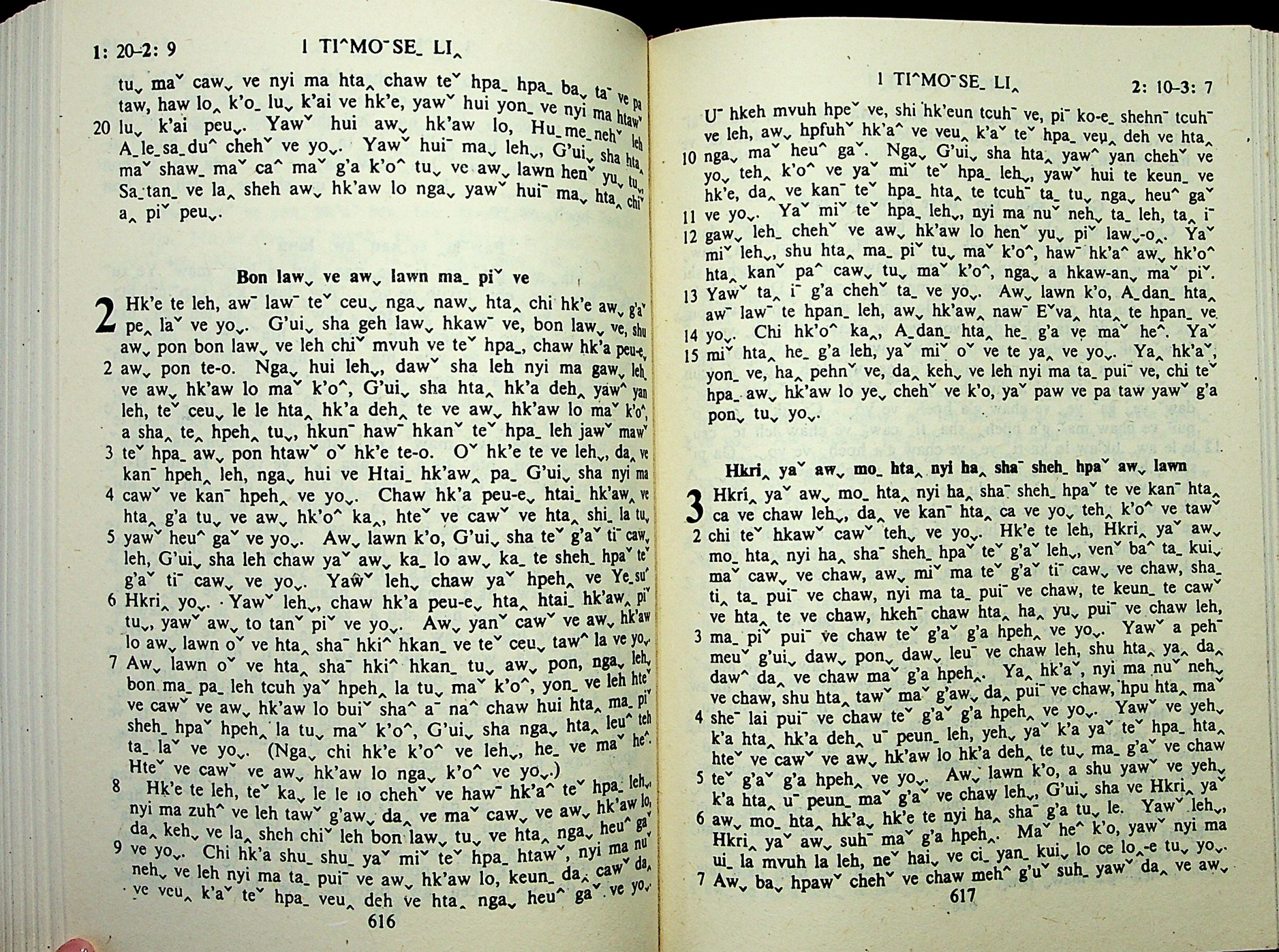 1985年拉祜文新约全书 提摩太前书 1 章 20 节到 3 章 7 节
