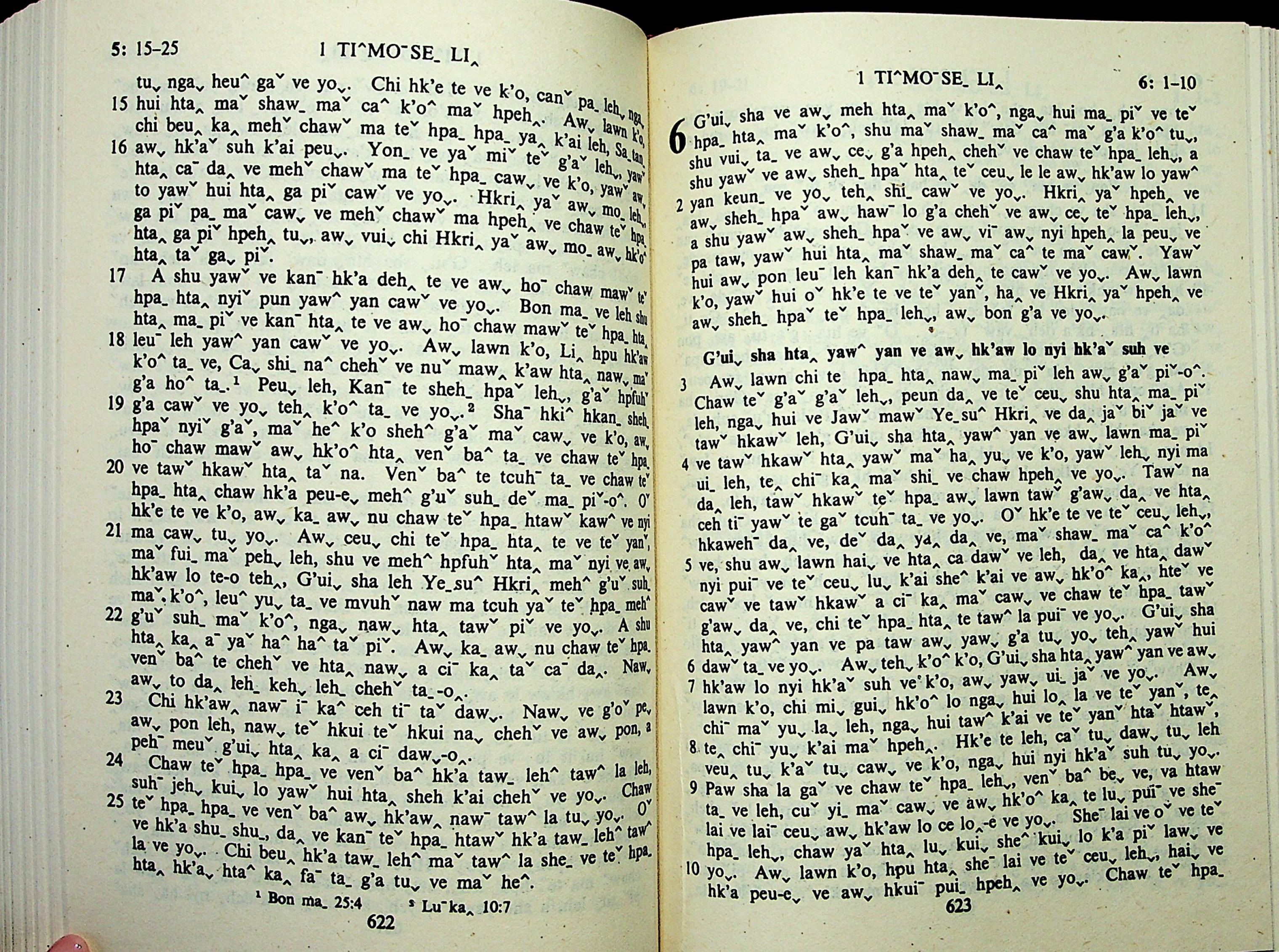 1985年拉祜文新约全书 提摩太前书 5 章 15 节到 6 章 10 节