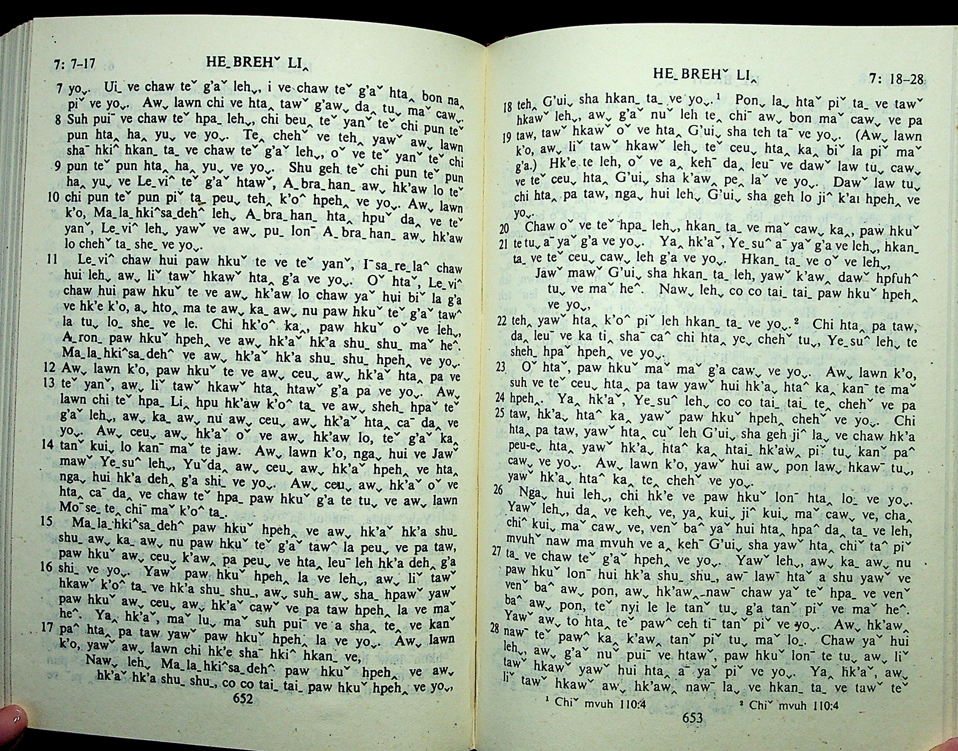 1985年拉祜文新约全书 希伯来书 7 章 7 节到 7 章 28 节