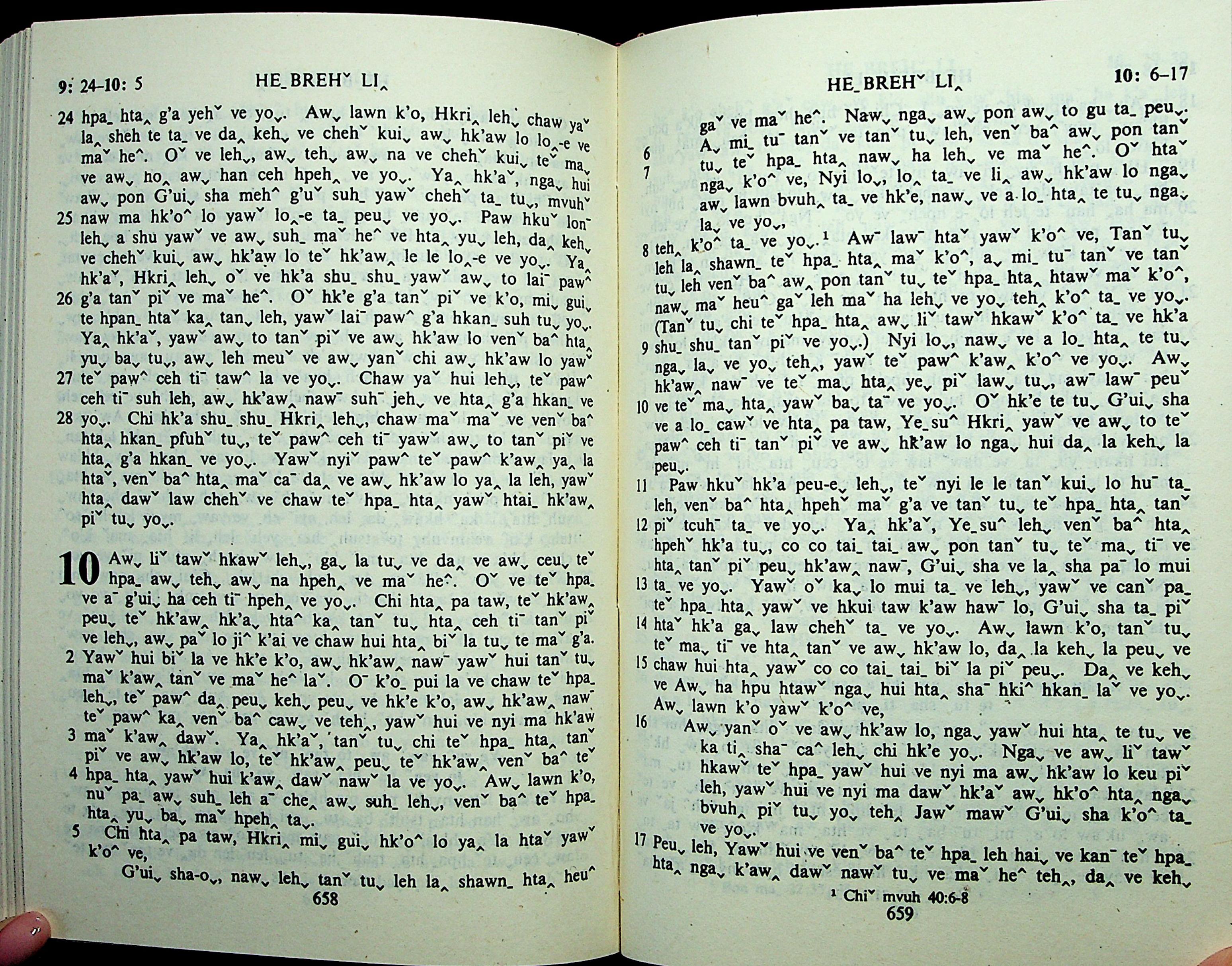 1985年拉祜文新约全书 希伯来书 9 章 24 节到 10 章 17 节