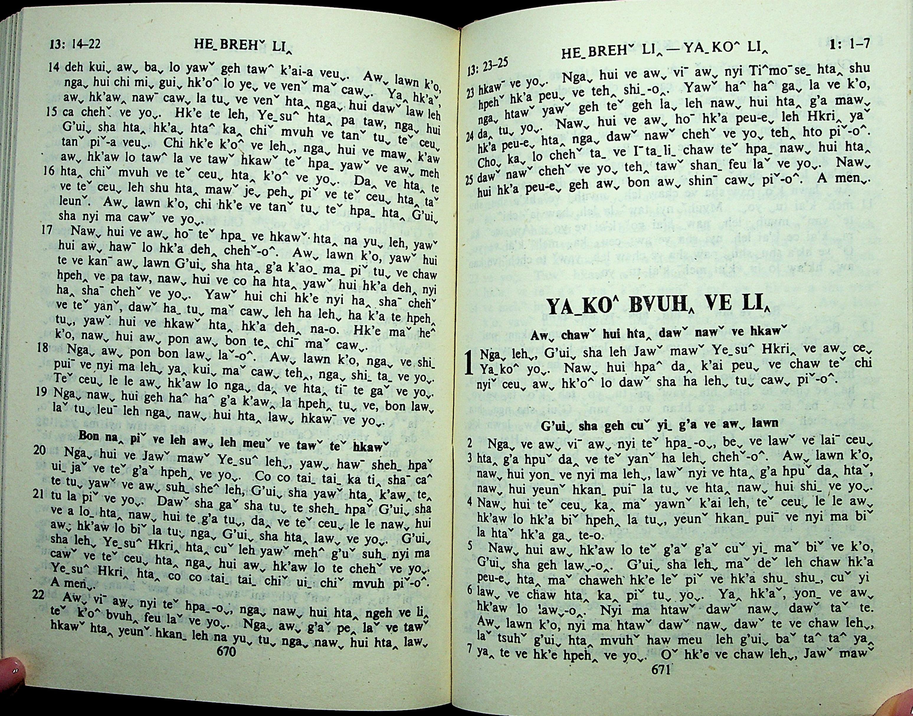 1985年拉祜文新约全书 雅各书 1 章 1 节到 1 章 7 节