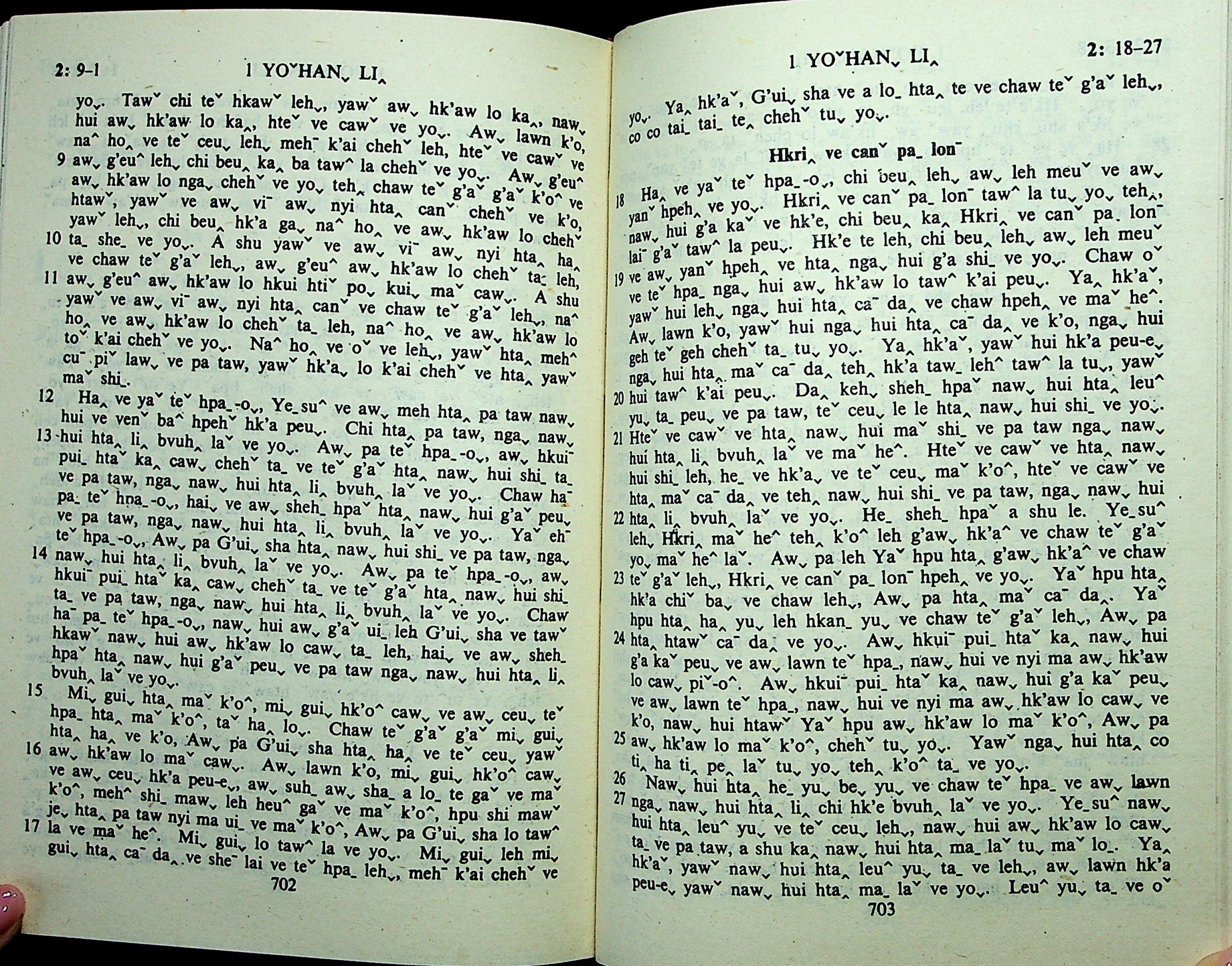 1985年拉祜文新约全书 约翰一书 2 章 9 节到 2 章 27 节