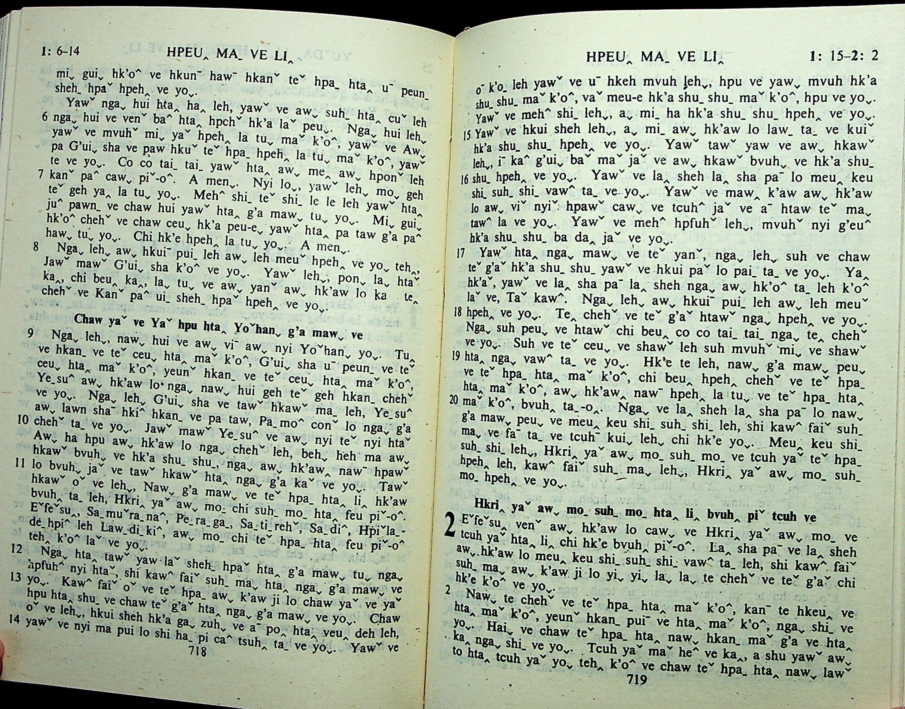 1985年拉祜文新约全书 启示录 1 章 6 节到 2 章 2 节
