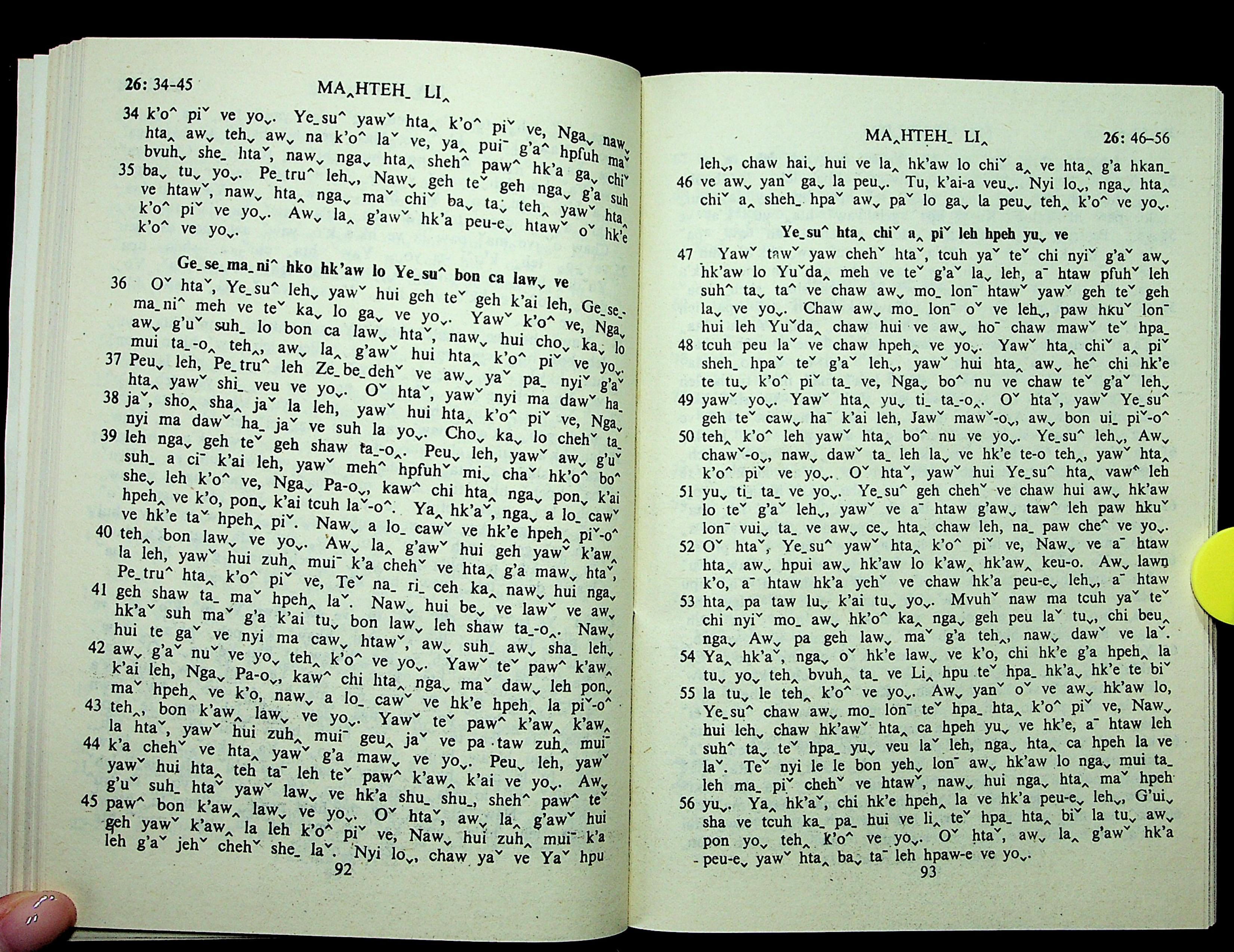 1985年拉祜文新约全书 马太福音 26 章 34 节到 26 章 56 节