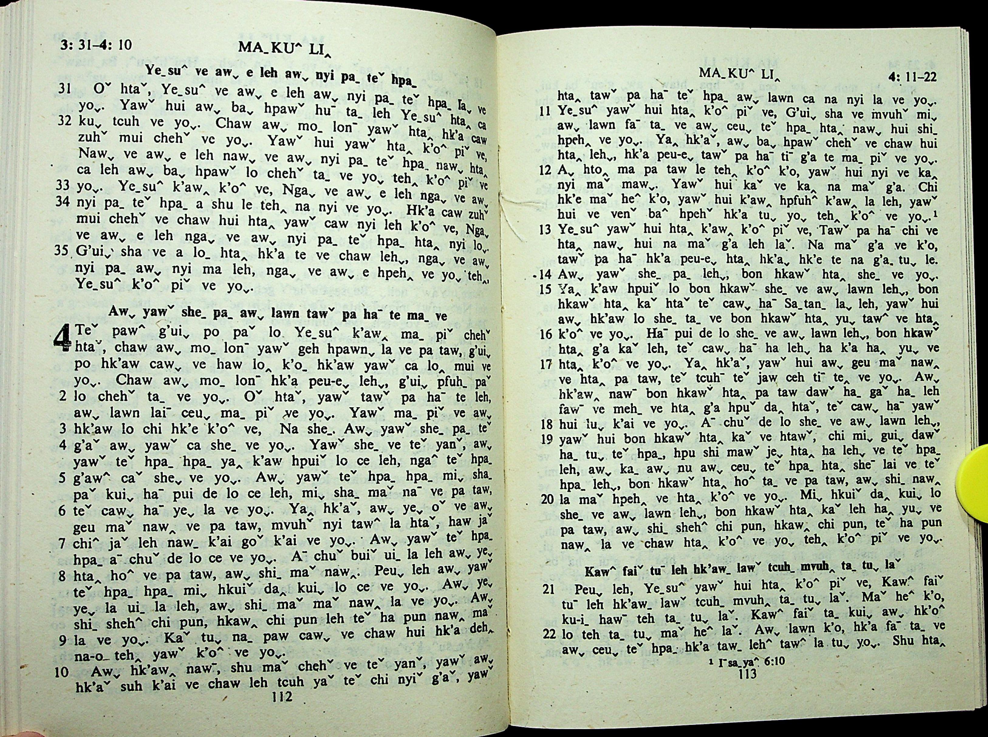 1985年拉祜文新约全书 马可福音 3 章 31 节到 4 章 22 节
