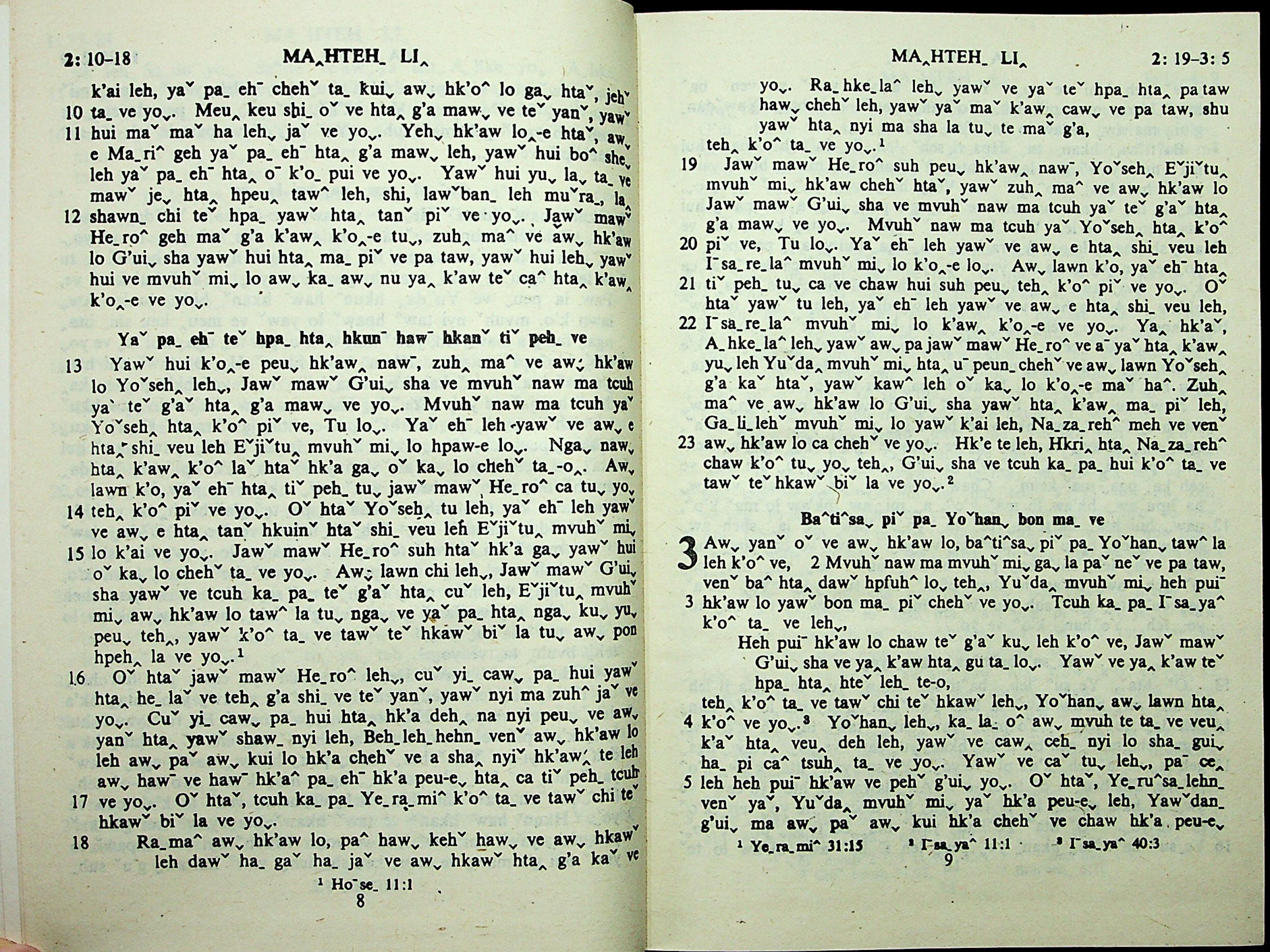 1985年拉祜文新约全书 马太福音 2 章 10 节到 3 章 5 节
