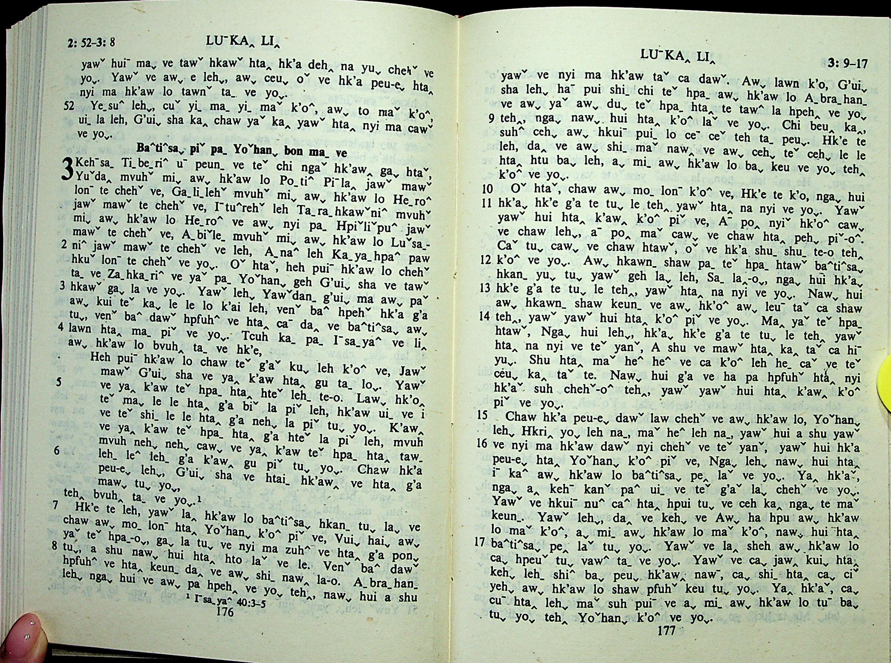 1985年拉祜文新约全书 路加福音 2 章 52 节到 3 章 17 节