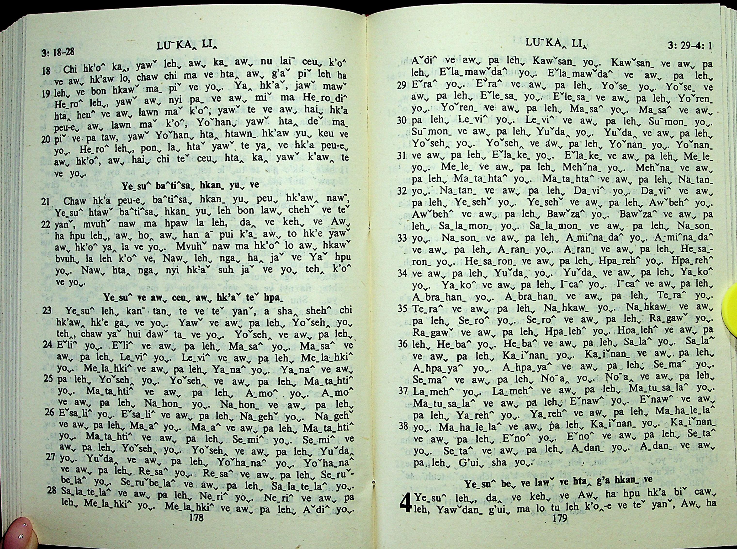 1985年拉祜文新约全书 路加福音 3 章 18 节到 4 章 1 节