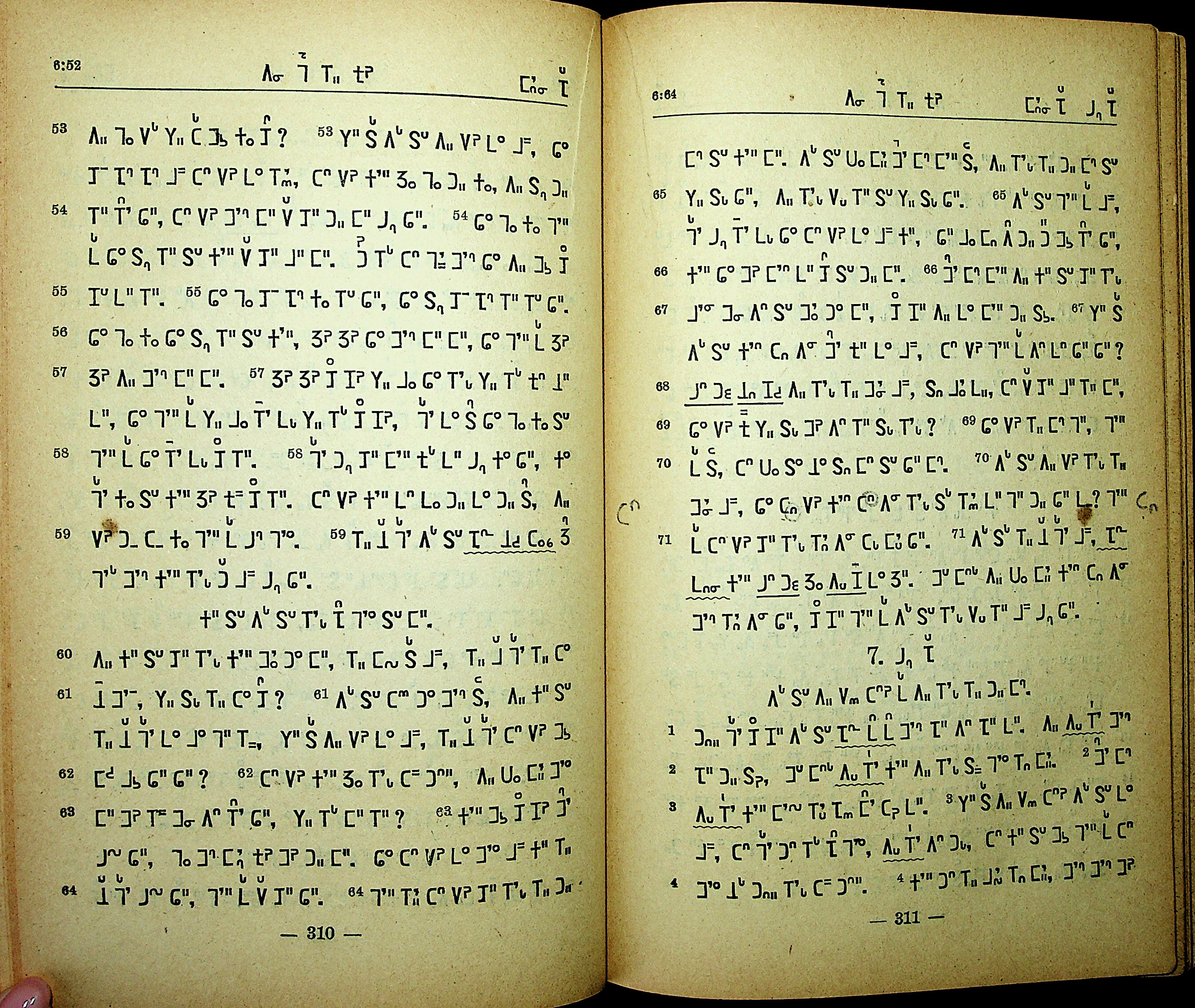 1951年东栗僳新约 约翰福音 6 章 53 节到 7 章 4 节