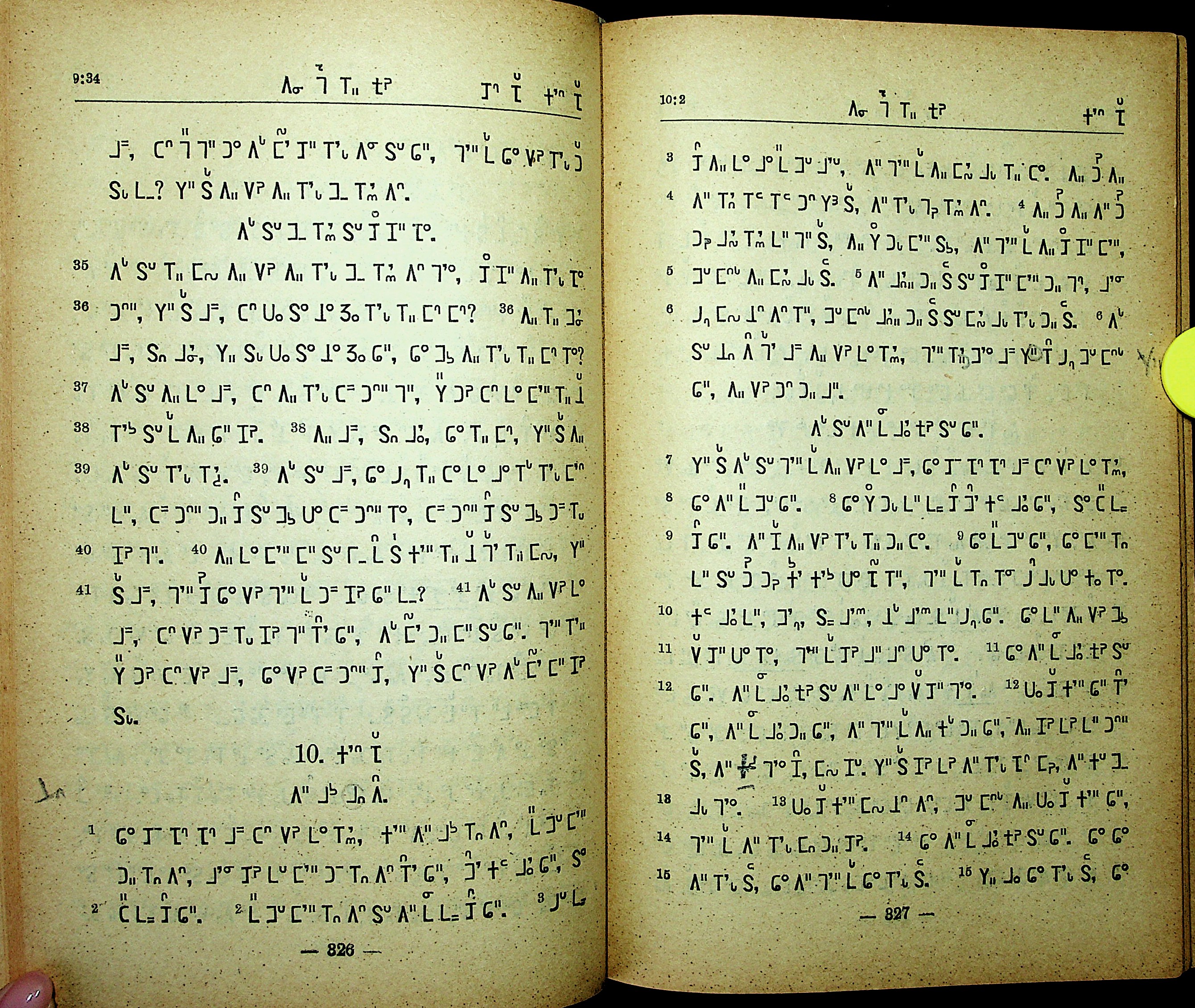 1951年东栗僳新约 约翰福音 9 章 35 节到 10 章 15 节