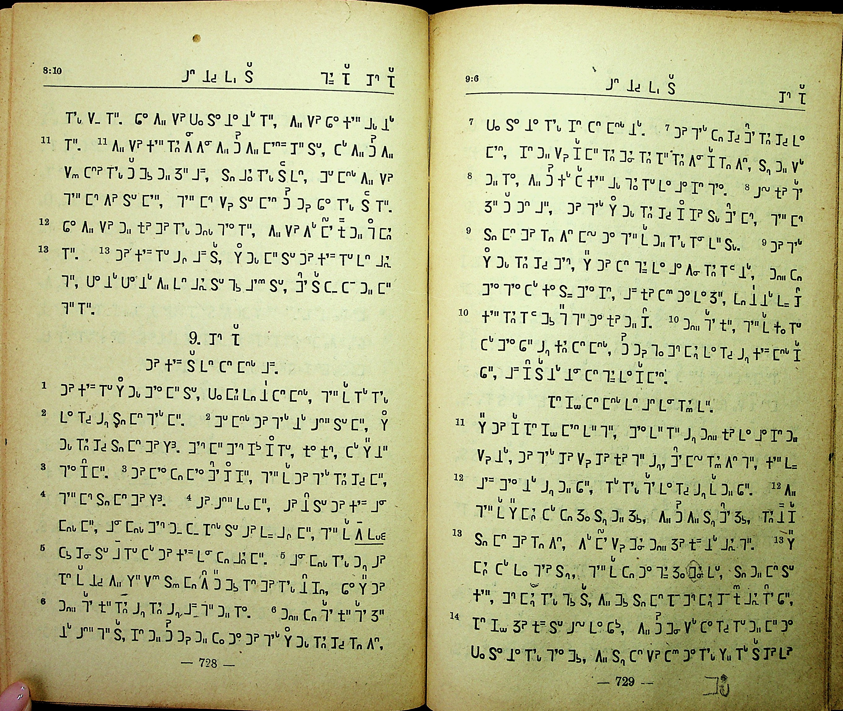 1951年东栗僳新约 希伯来书 8 章 11 节到 9 章 14 节