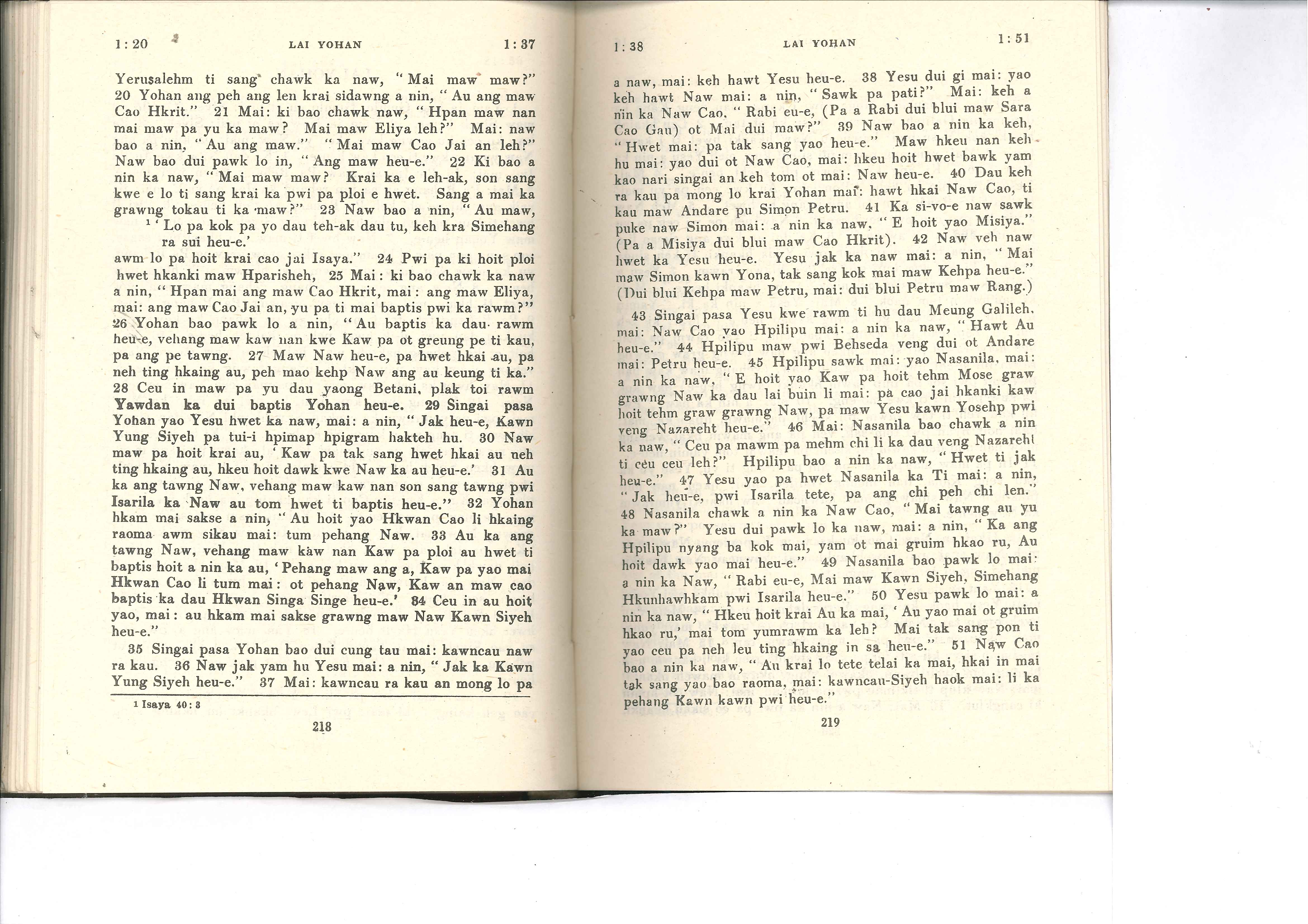 1985年佤文新约全书 约翰福音 1 章 20 节到 1 章 51 节