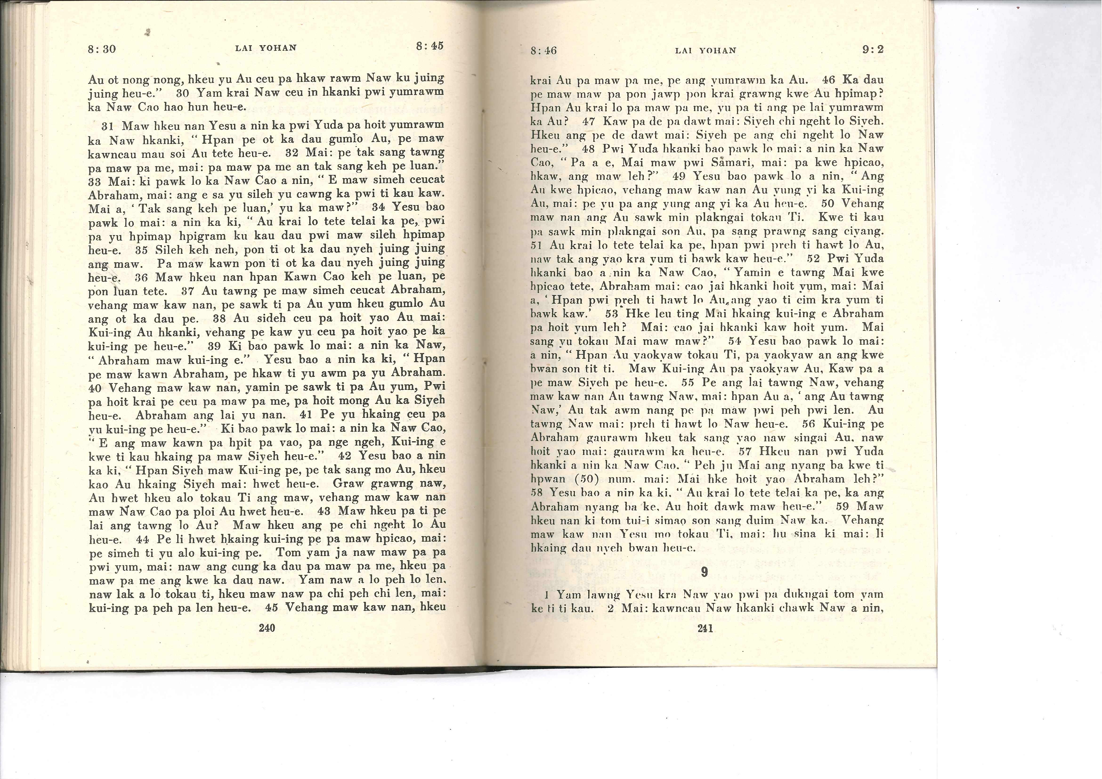 1985年佤文新约全书 约翰福音 8 章 30 节到 9 章 2 节