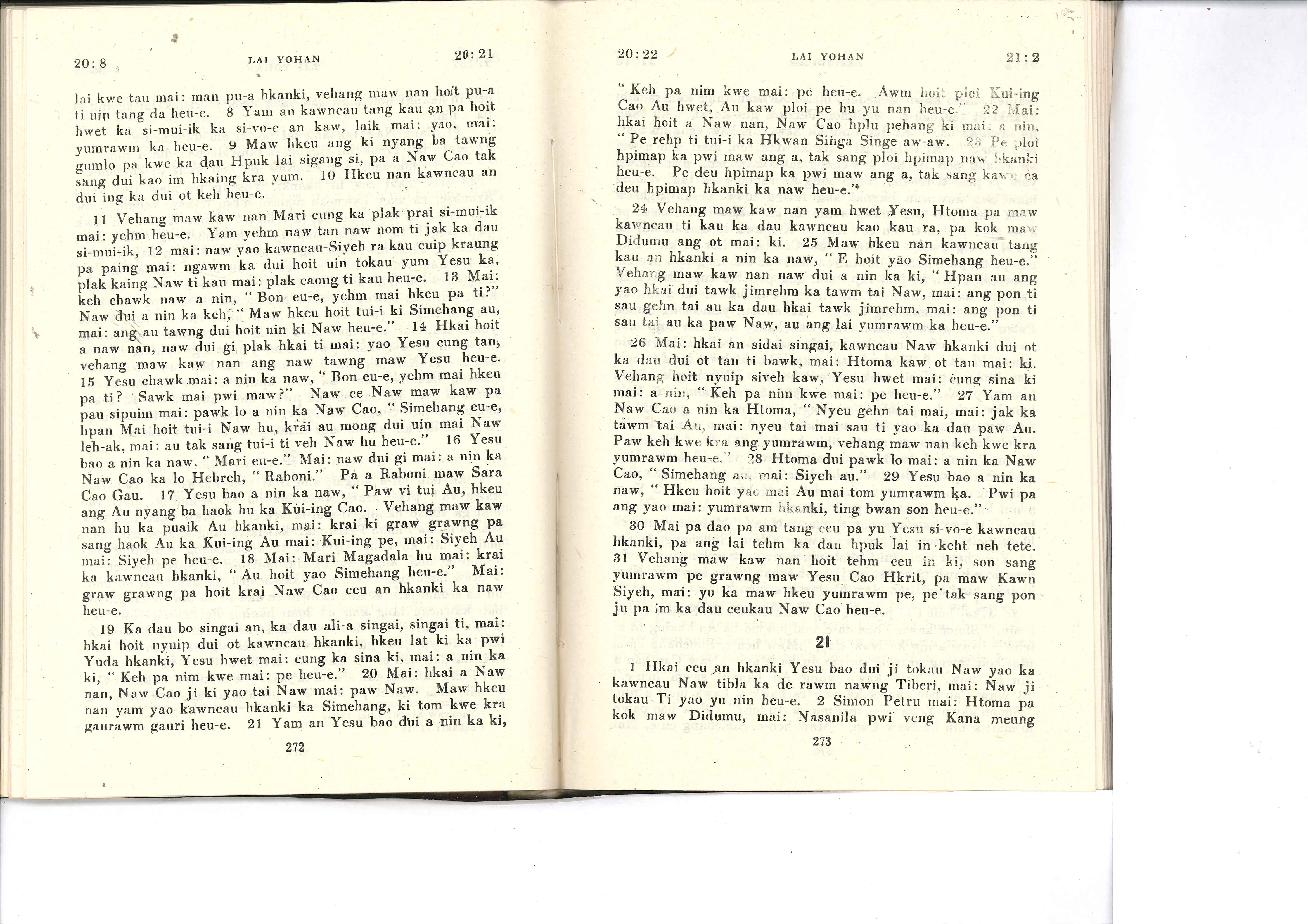 1985年佤文新约全书 约翰福音 20 章 8 节到 21 章 2 节