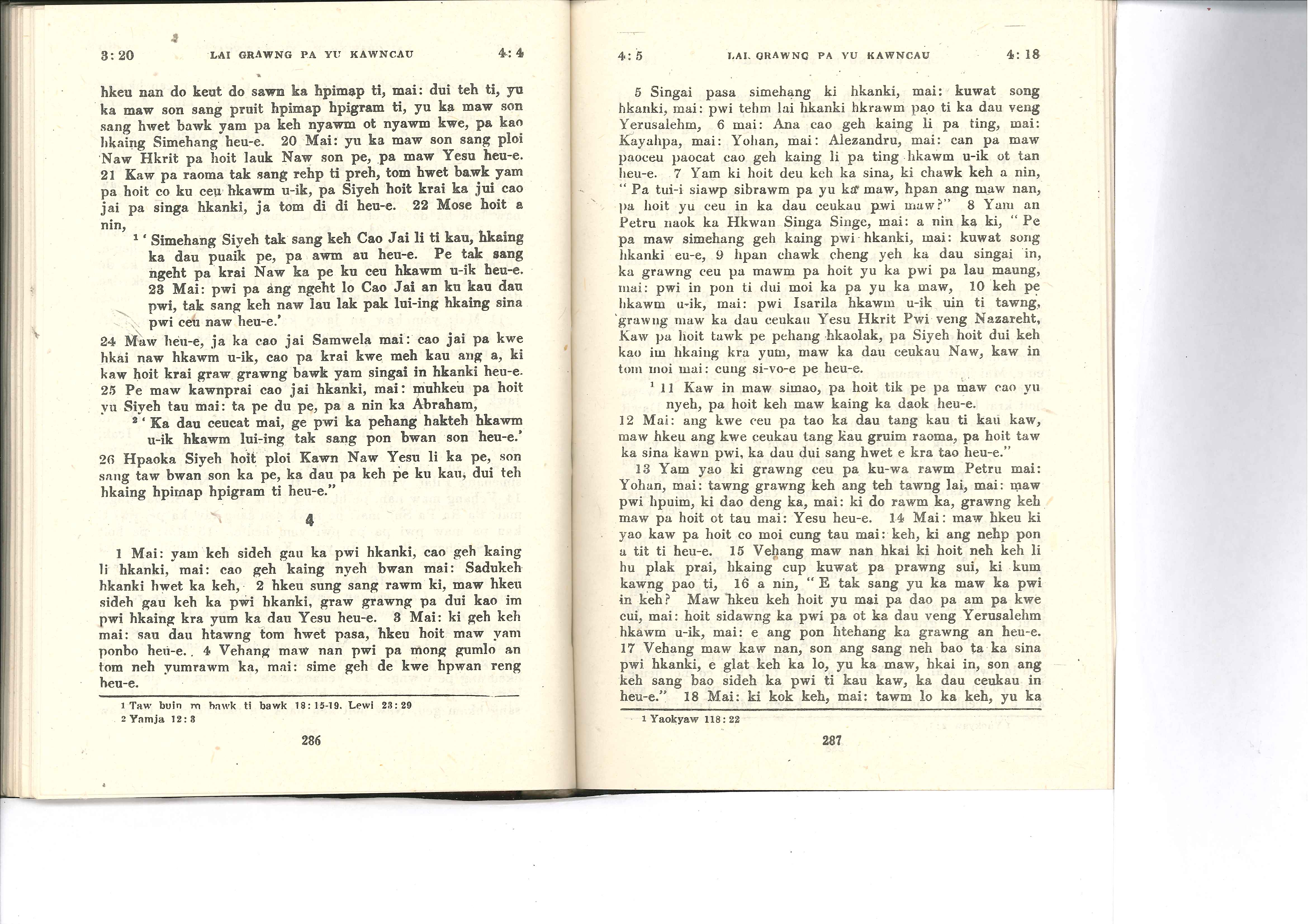 1985年佤文新约全书 使徒行传 3 章 20 节到 4 章 18 节