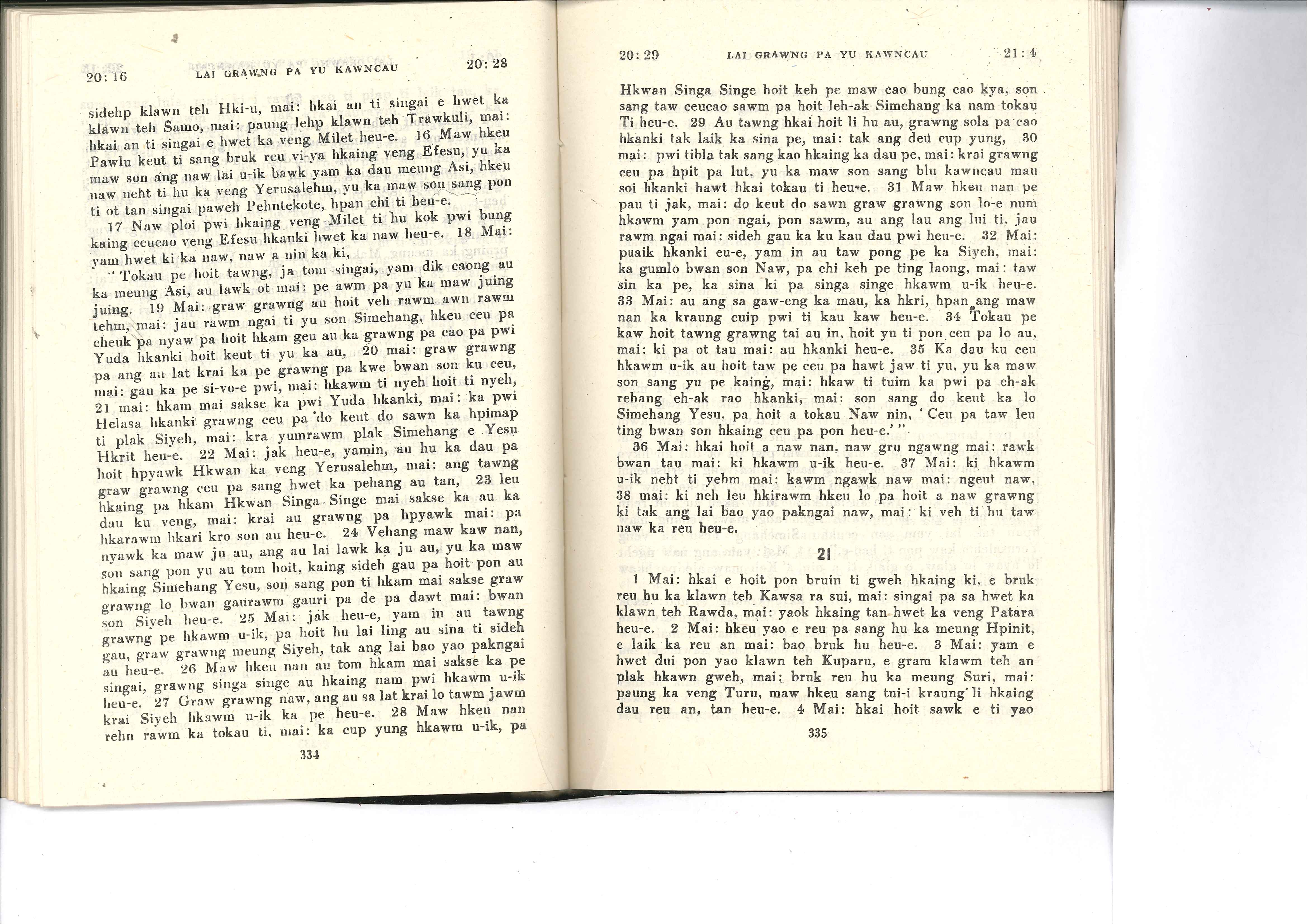 1985年佤文新约全书 使徒行传 20 章 16 节到 21 章 4 节