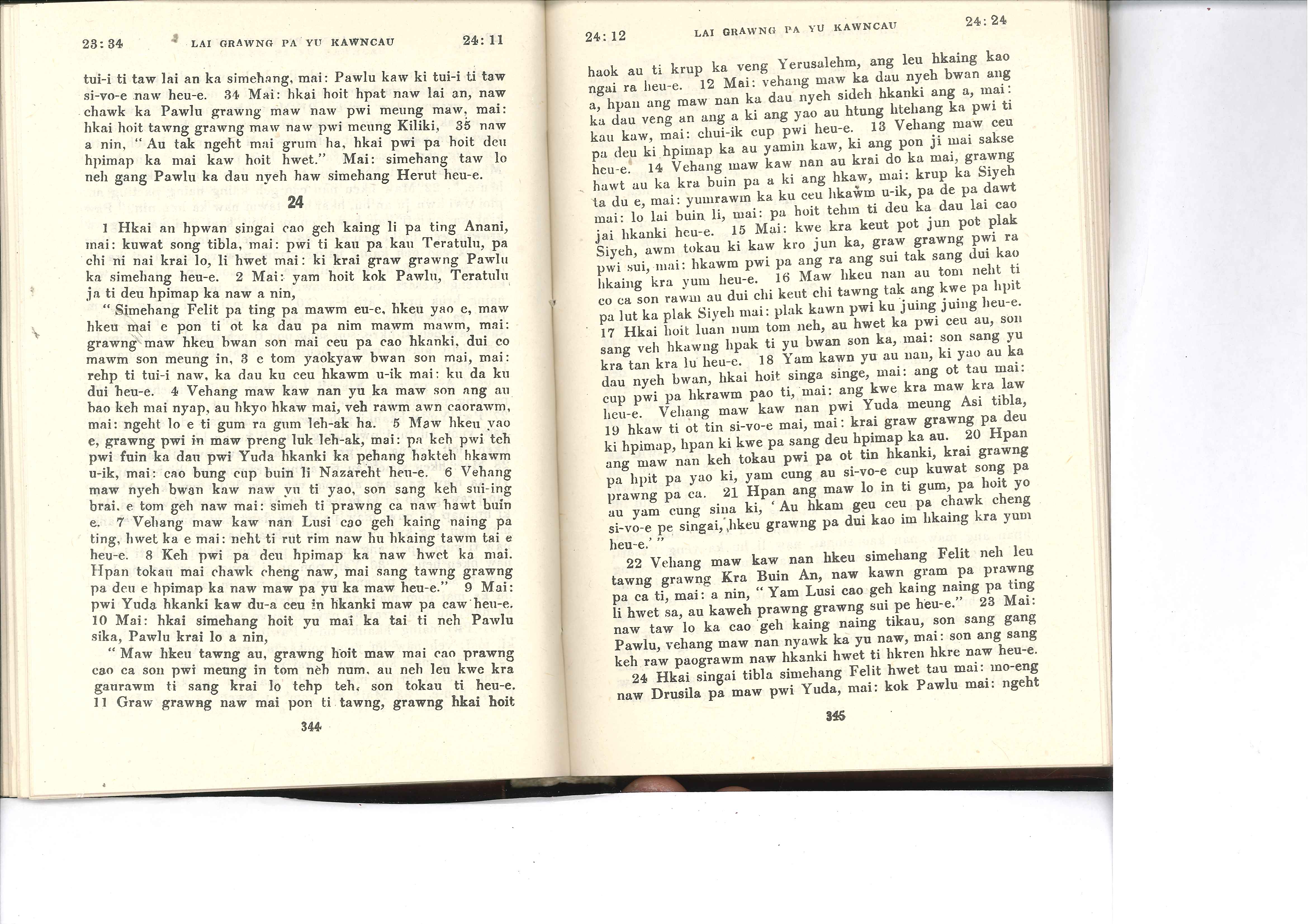 1985年佤文新约全书 使徒行传 23 章 34 节到 24 章 24 节