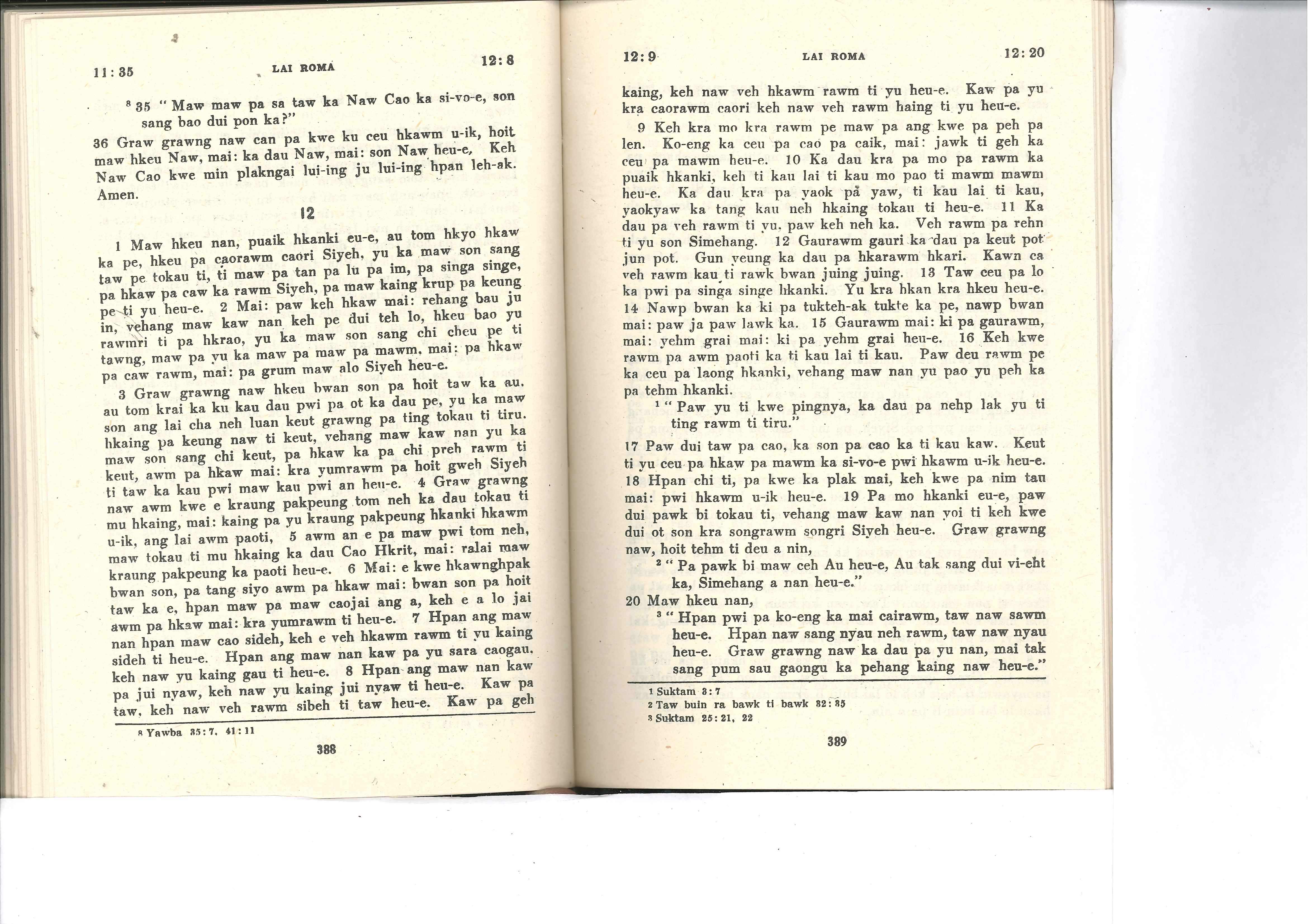1985年佤文新约全书 罗马书 11 章 35 节到 12 章 20 节