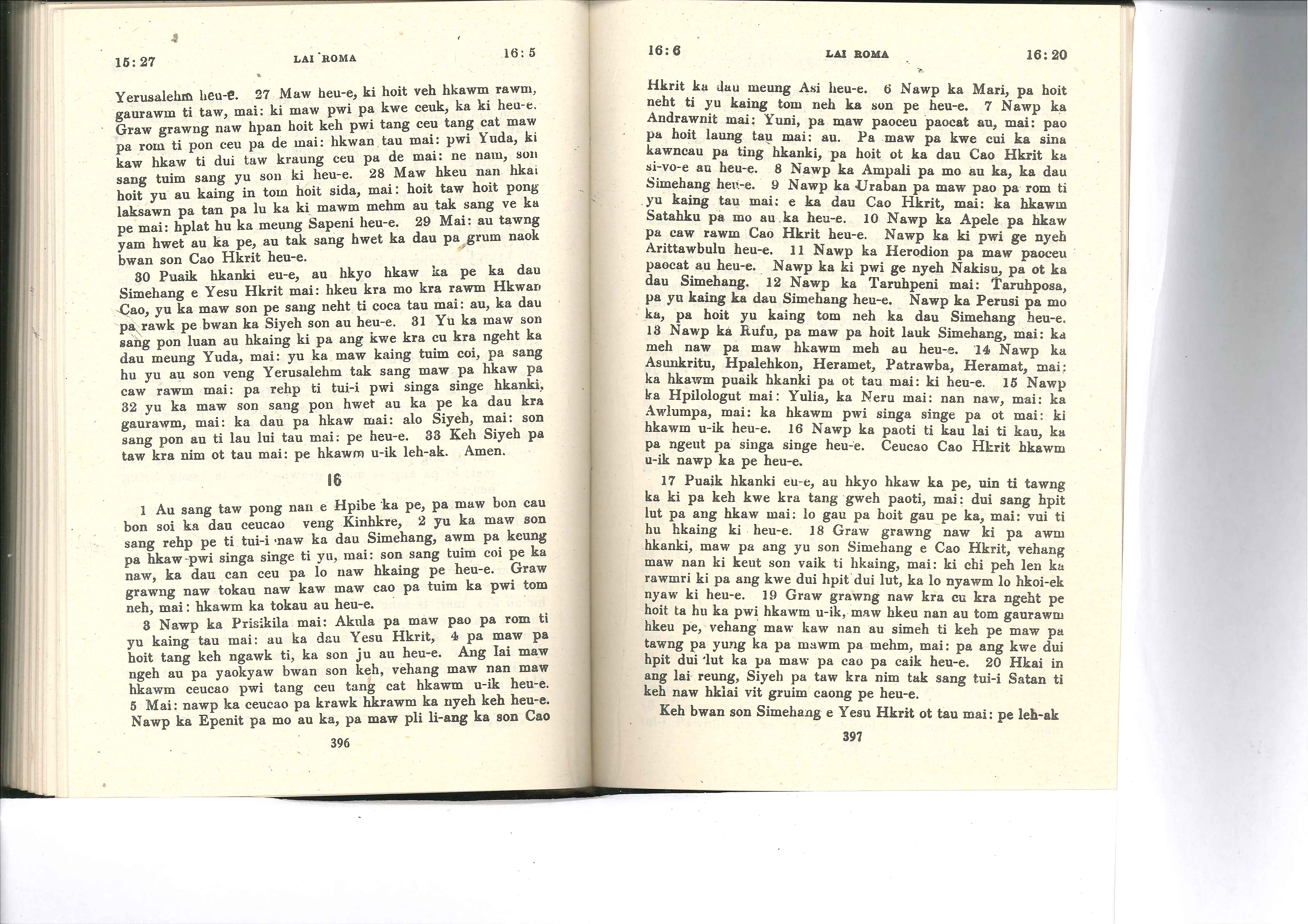 1985年佤文新约全书 罗马书 15 章 27 节到 16 章 20 节