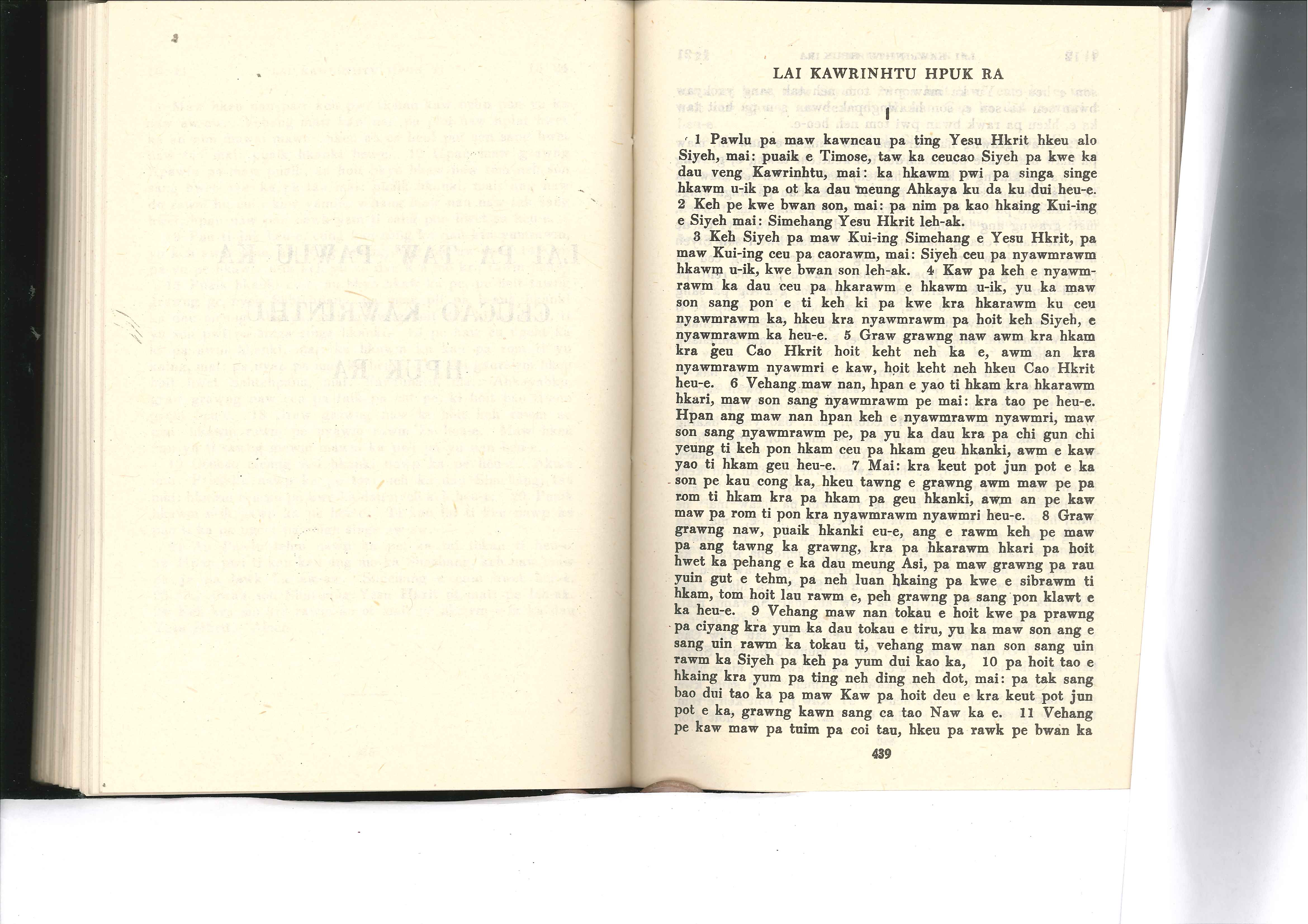 1985年佤文新约全书 哥林多后书 1 章 1 节到 1 章 11 节