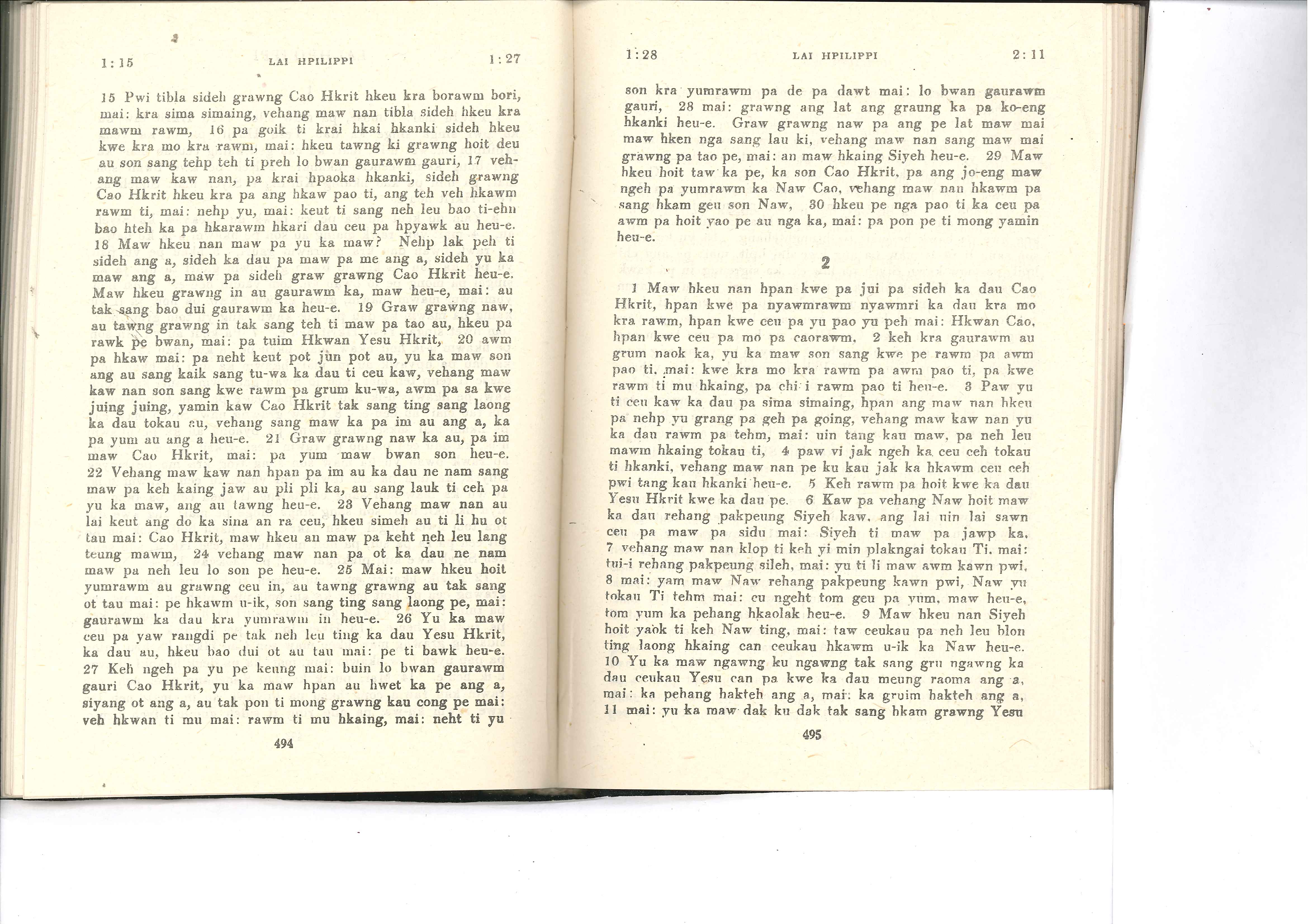 1985年佤文新约全书 腓立比书 1 章 15 节到 2 章 11 节