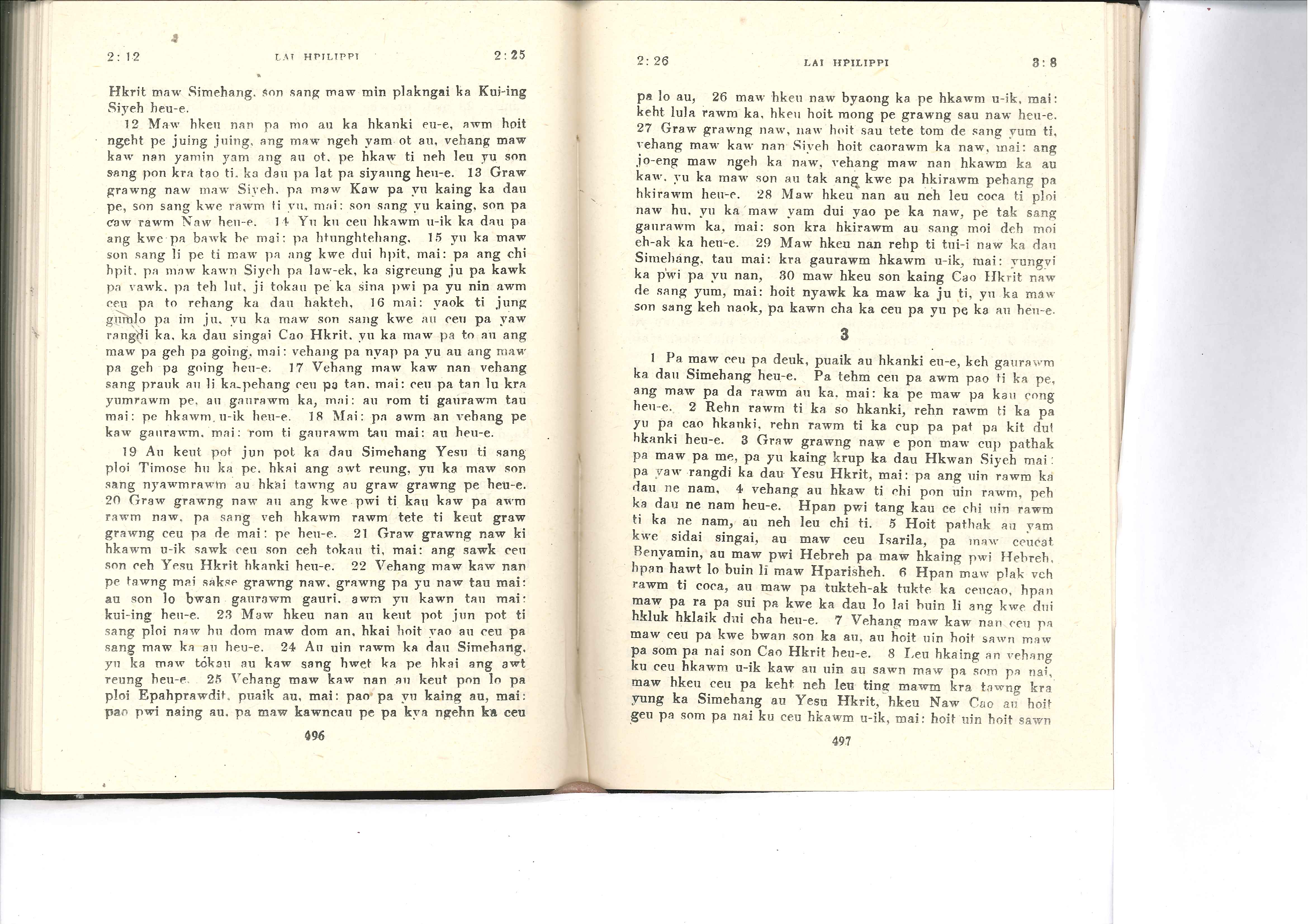 1985年佤文新约全书 腓立比书 2 章 12 节到 3 章 8 节
