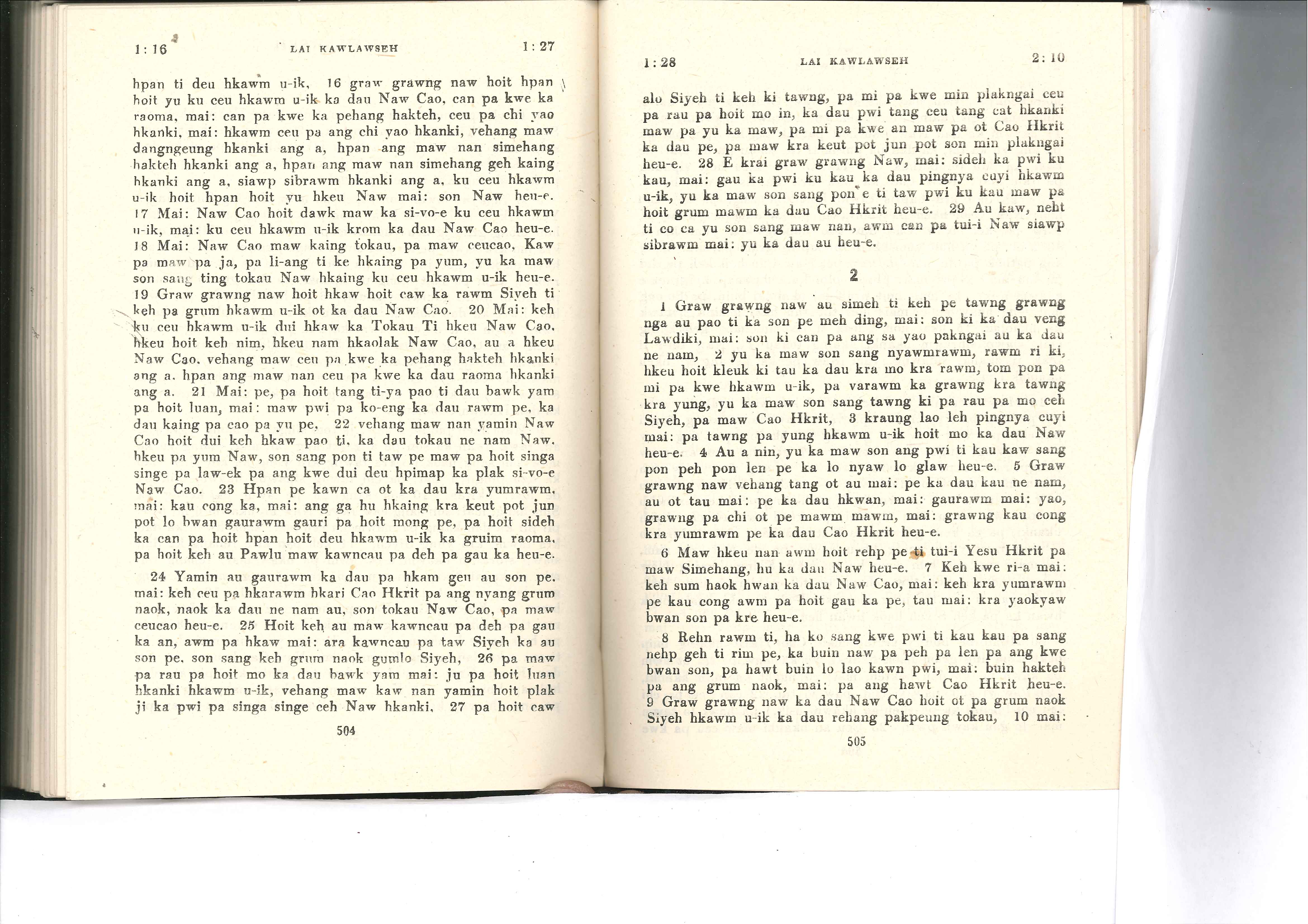 1985年佤文新约全书 歌罗西书 1 章 16 节到 2 章 10 节