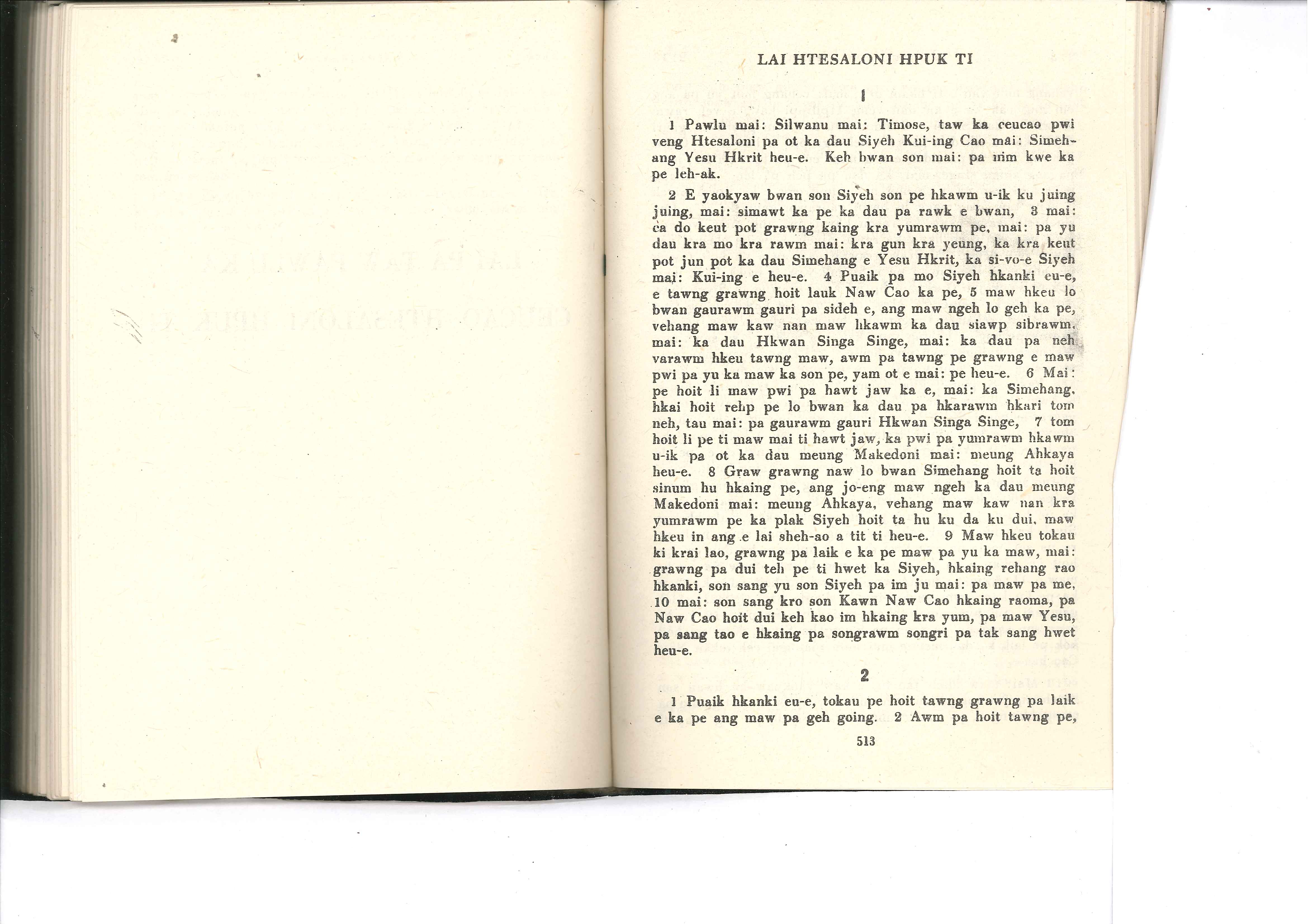 1985年佤文新约全书 帖撒罗尼迦前书 1 章 1 节到 2 章 2 节