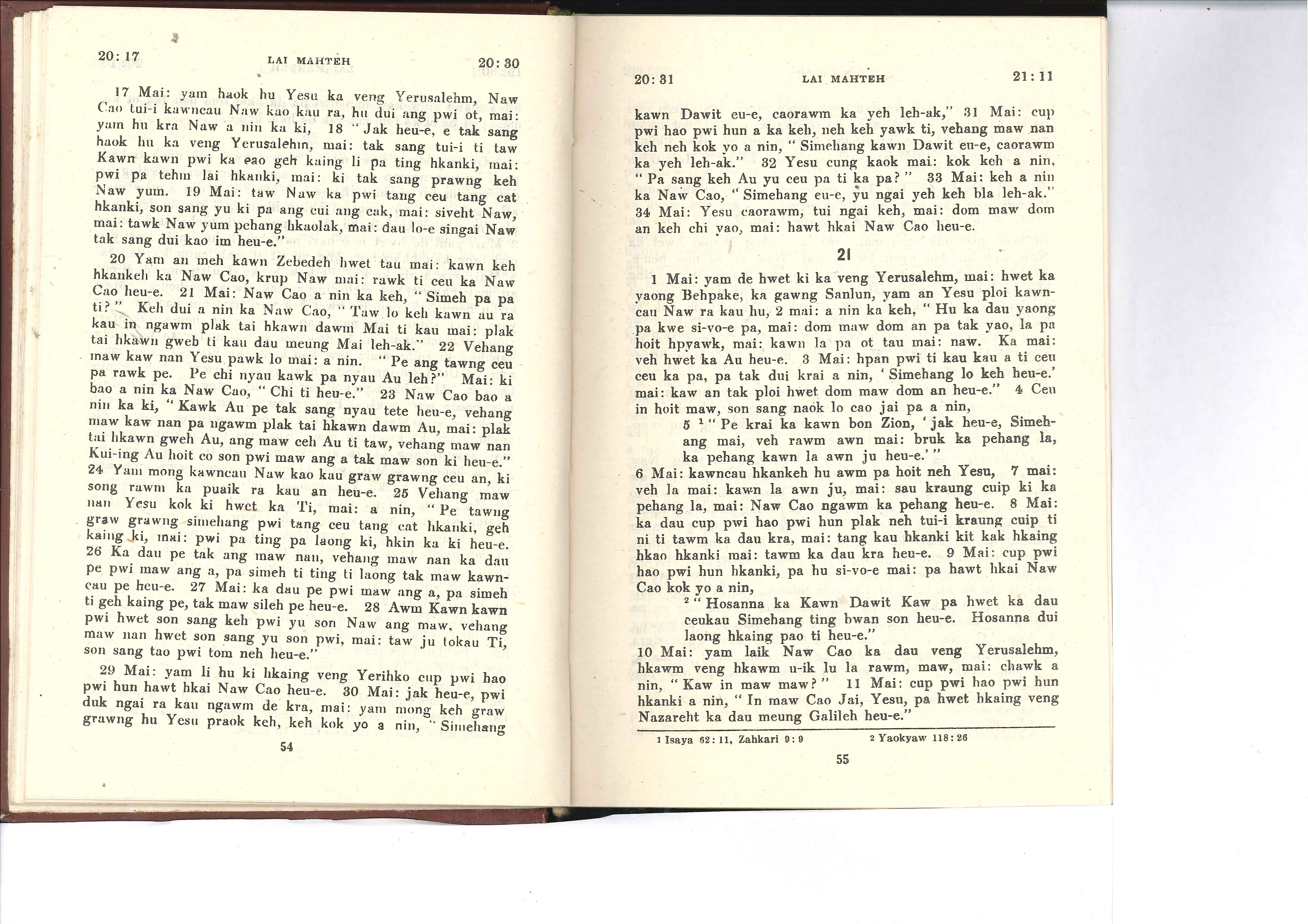 1985年佤文新约全书 马太福音 20 章 17 节到 21 章 11 节
