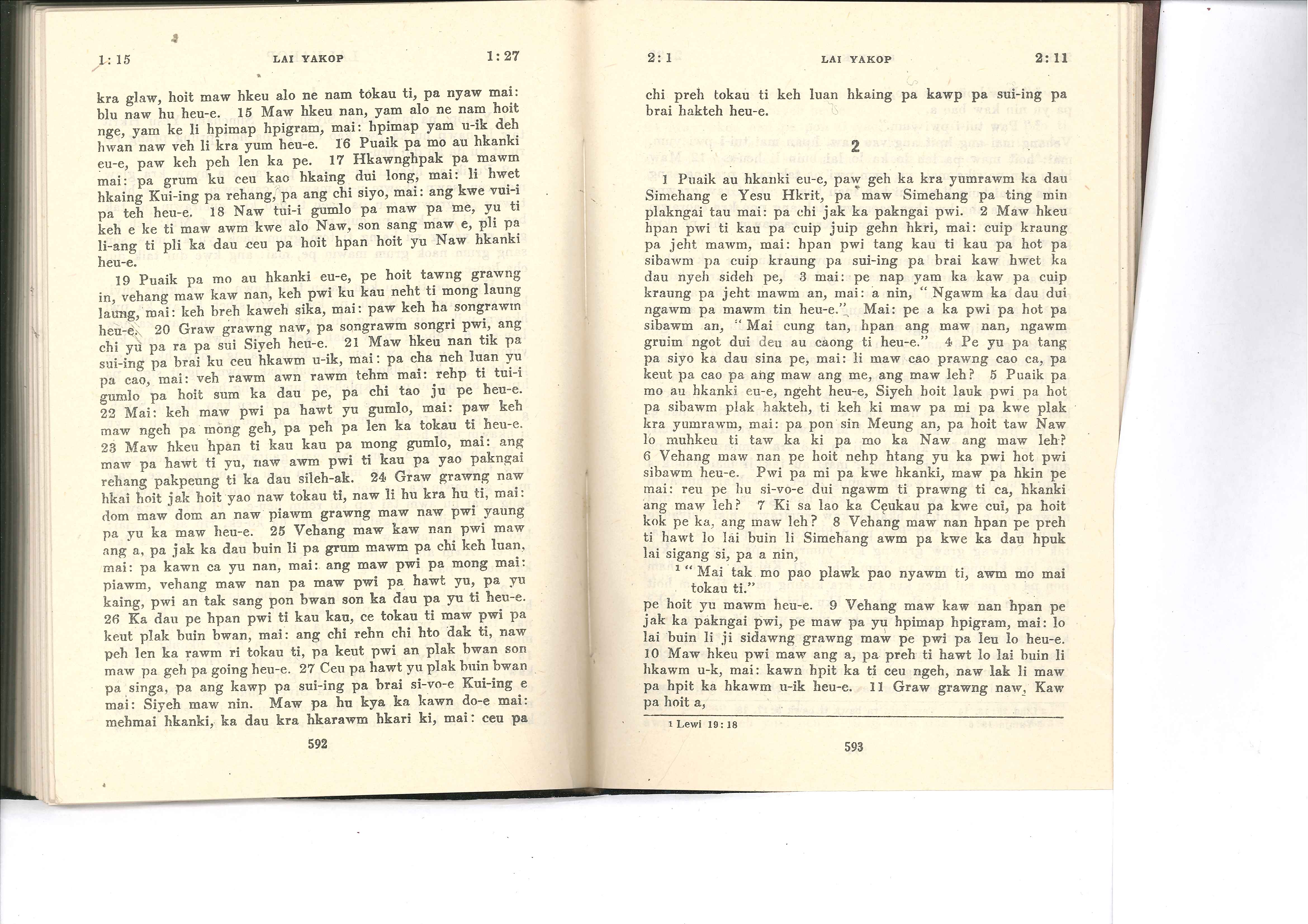 1985年佤文新约全书 雅各书 1 章 15 节到 2 章 11 节