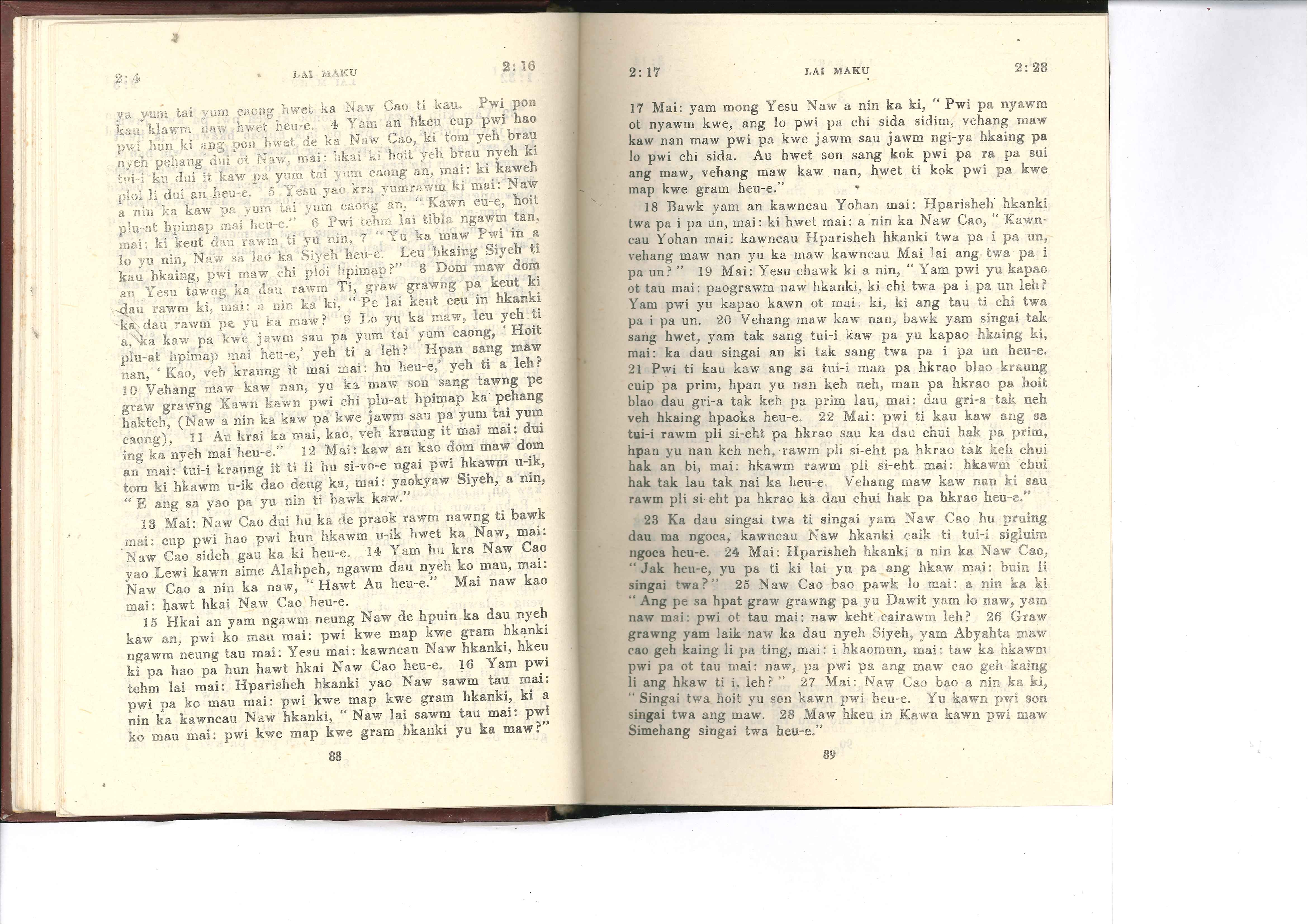 1985年佤文新约全书 马可福音 2 章 4 节到 2 章 28 节