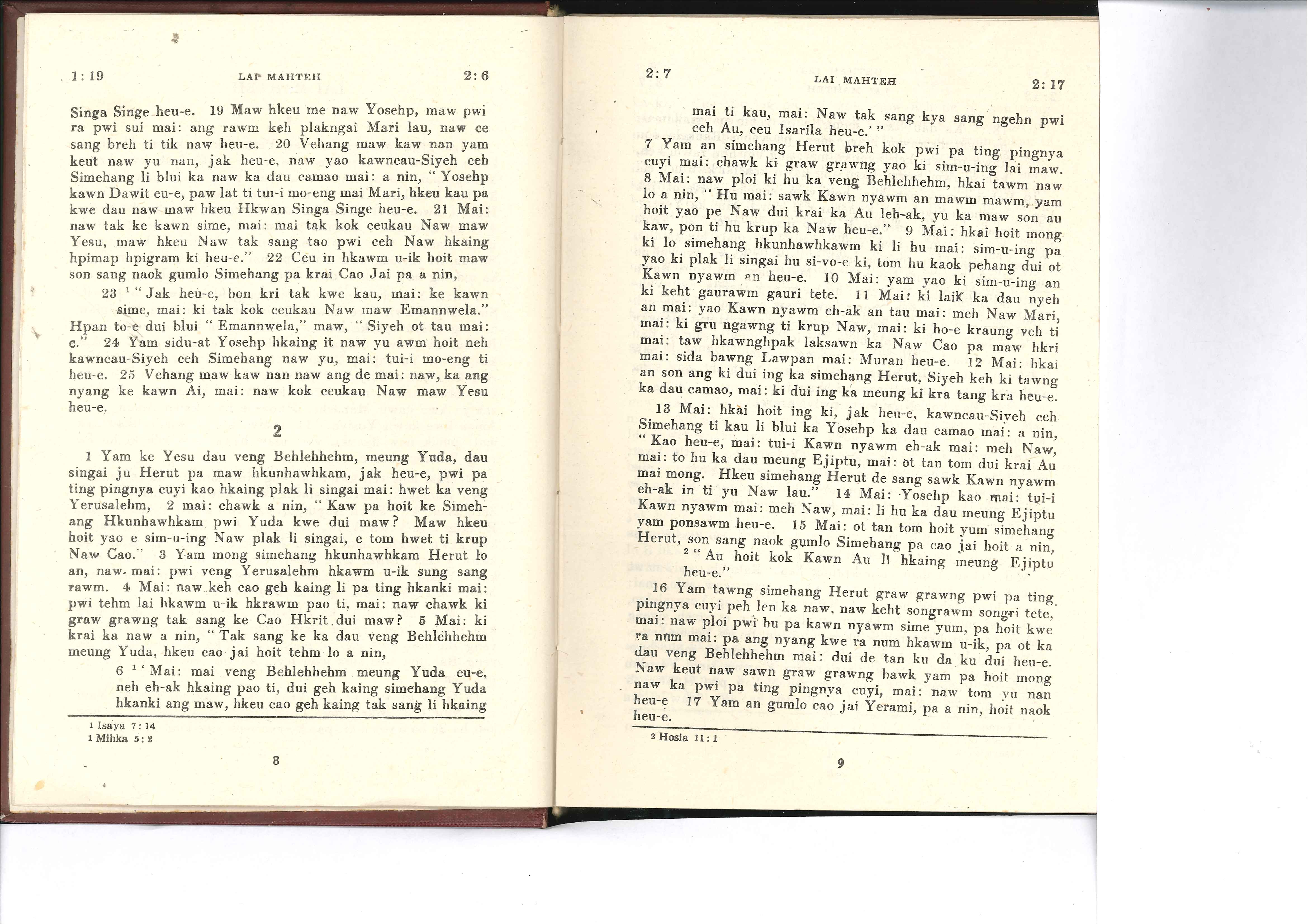1985年佤文新约全书 马太福音 1 章 19 节到 2 章 17 节