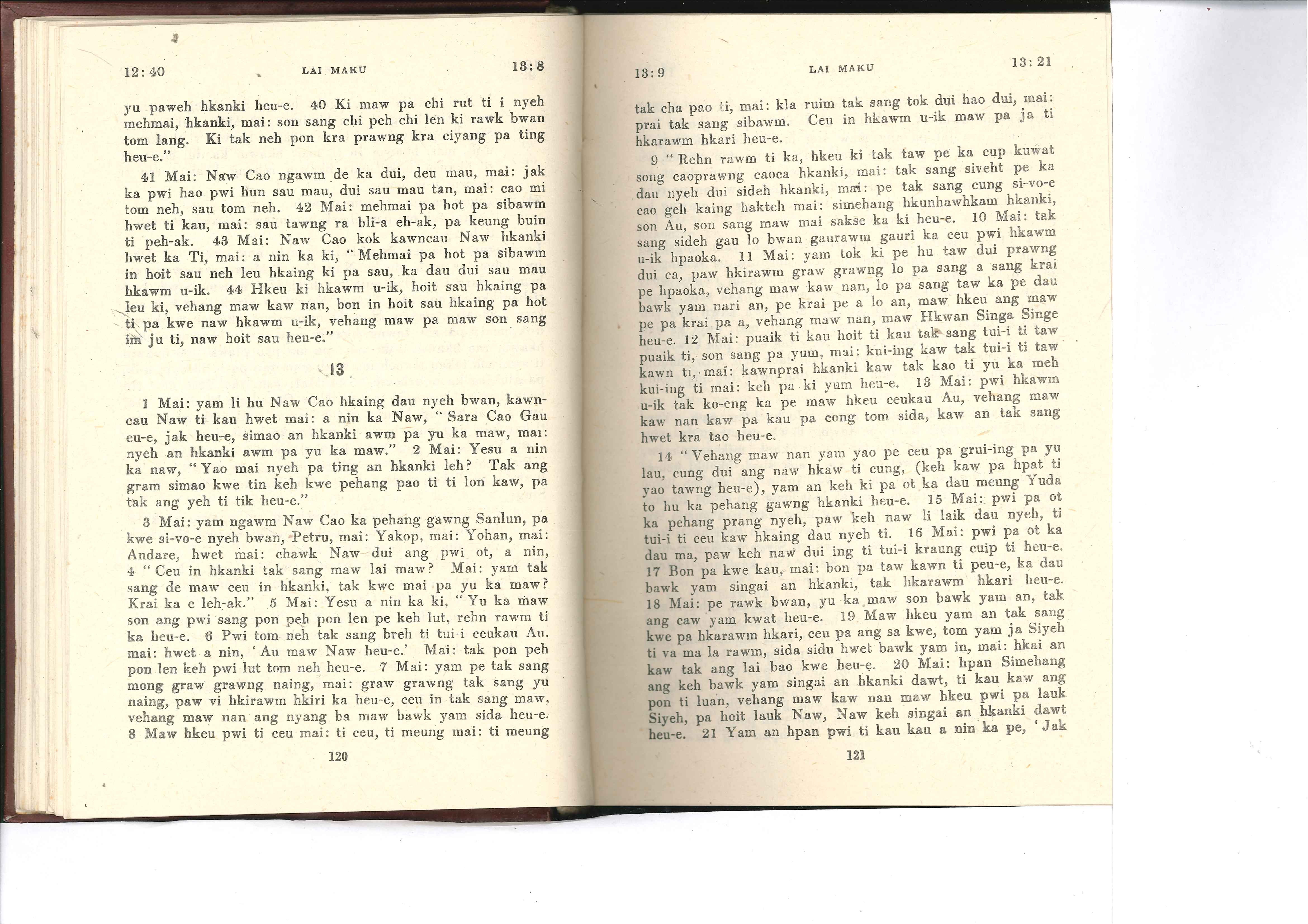 1985年佤文新约全书 马可福音 12 章 40 节到 13 章 21 节