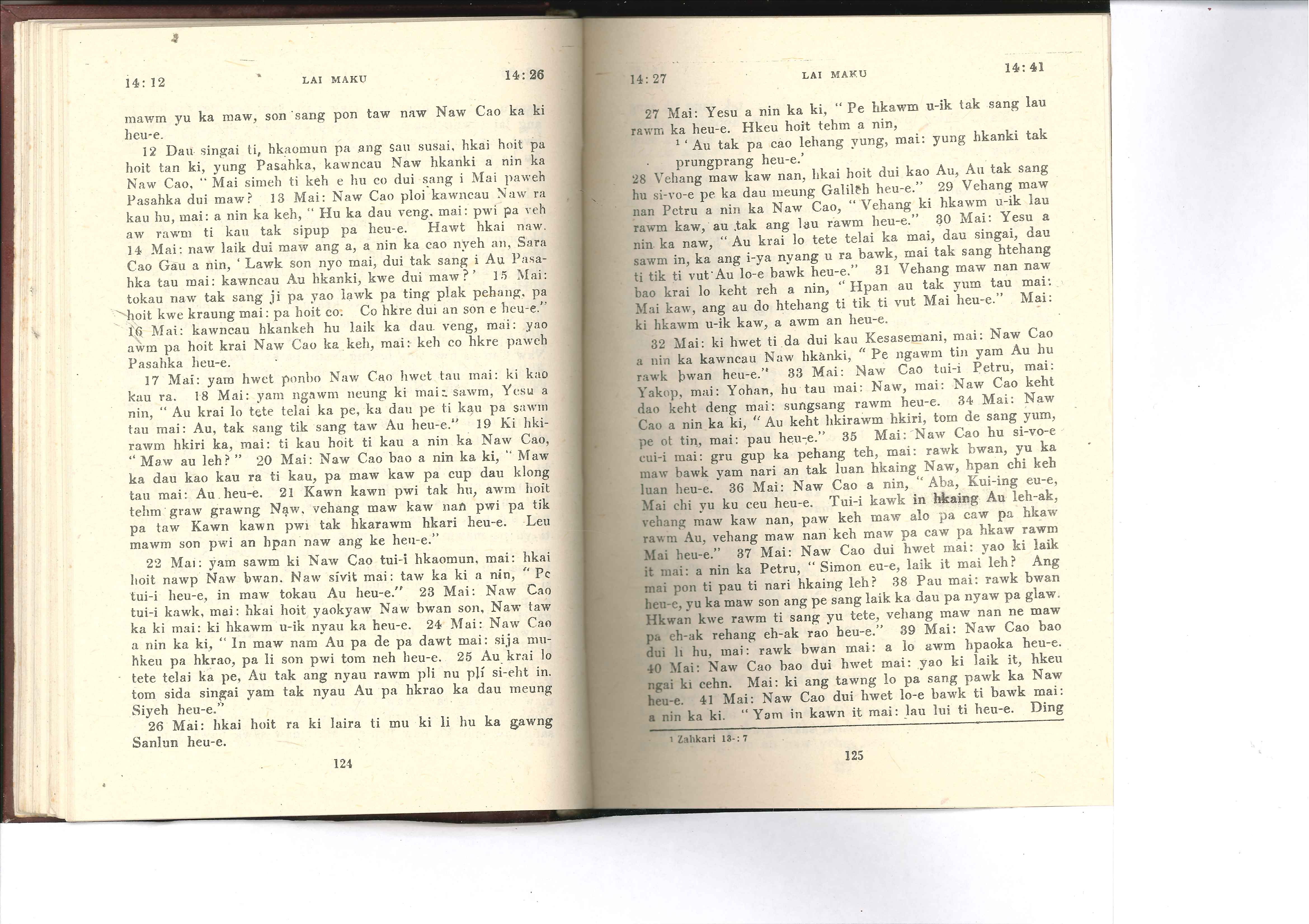 1985年佤文新约全书 马可福音 14 章 12 节到 14 章 41 节