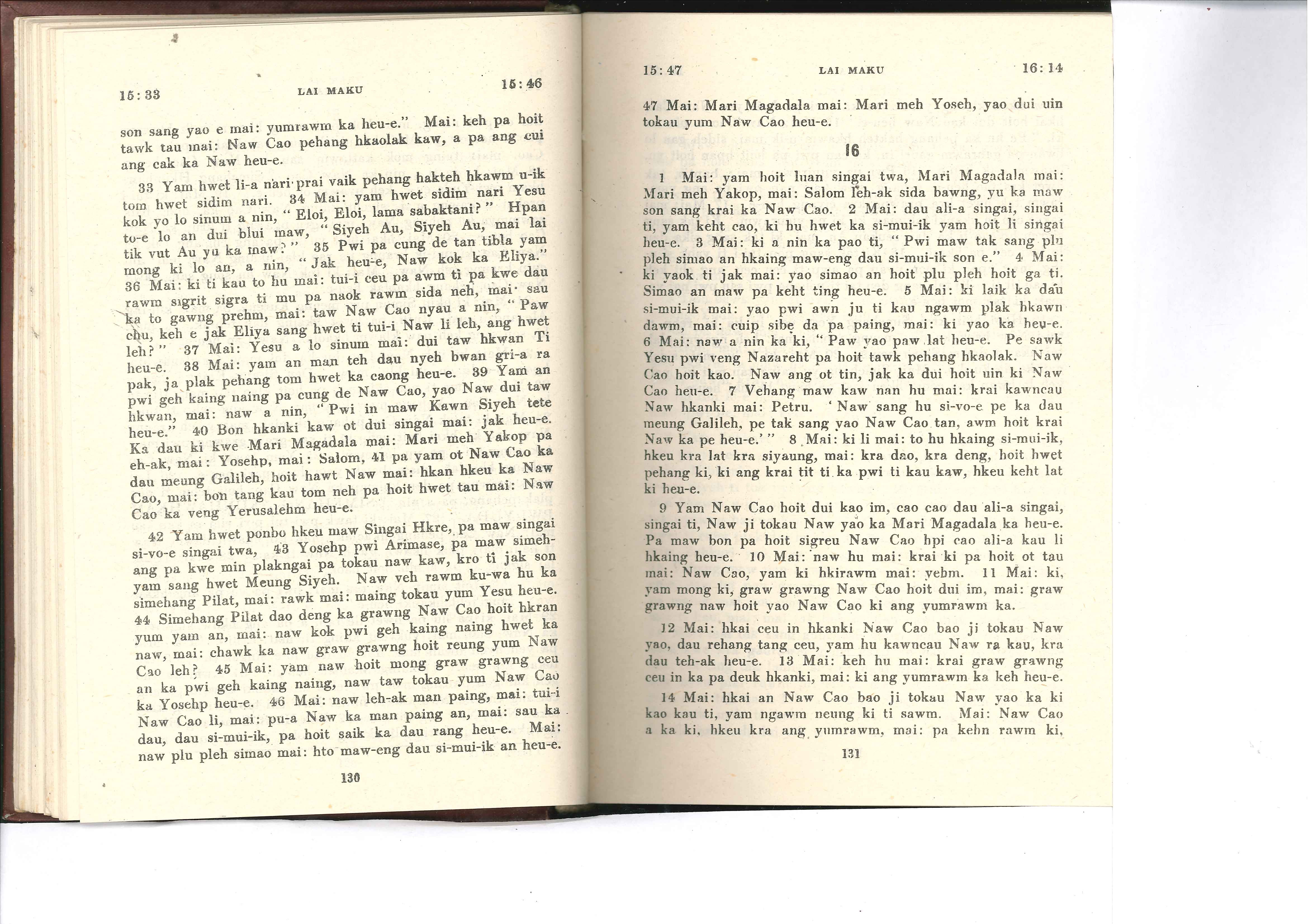 1985年佤文新约全书 马可福音 15 章 33 节到 16 章 14 节