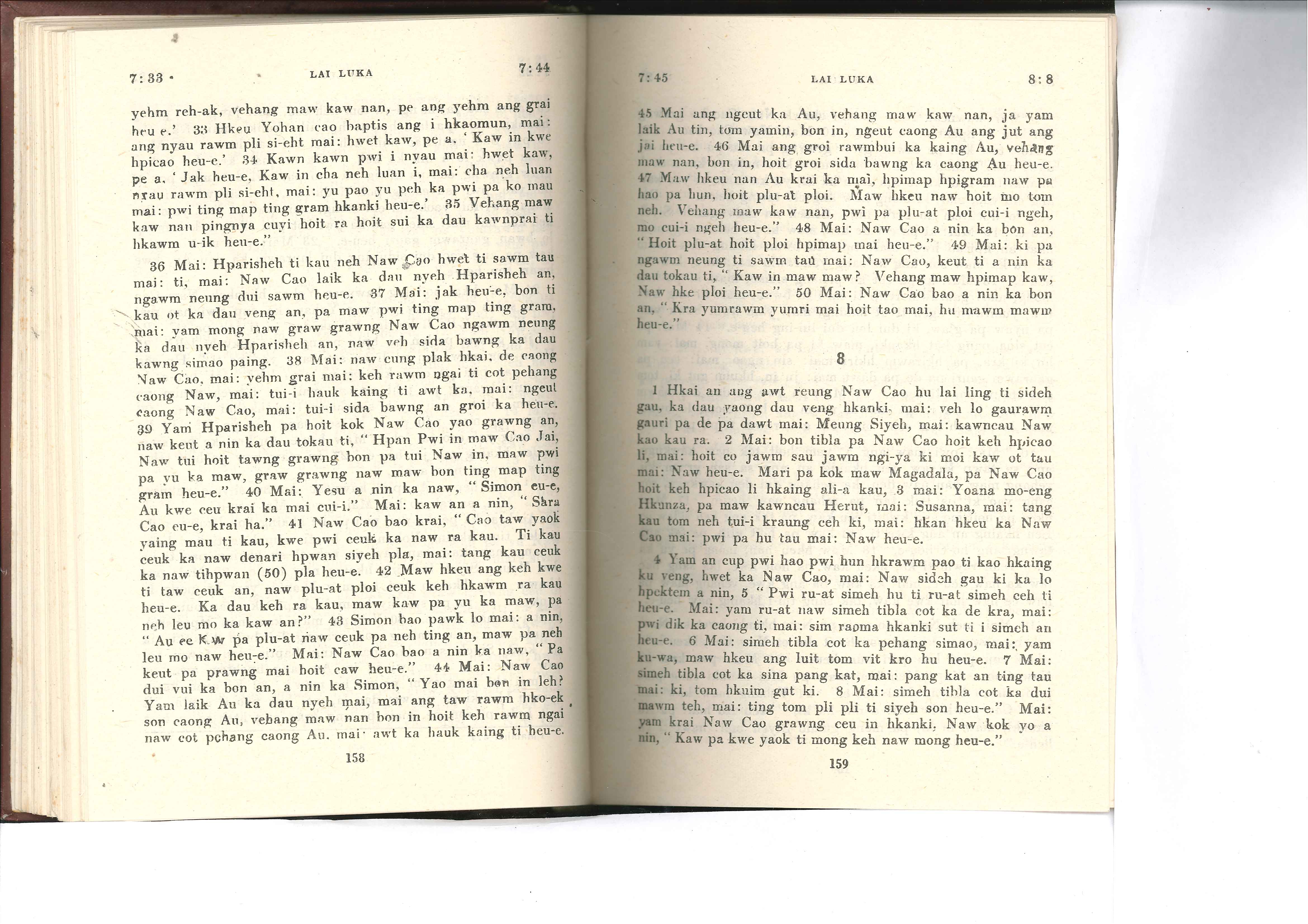 1985年佤文新约全书 路加福音 7 章 33 节到 8 章 8 节