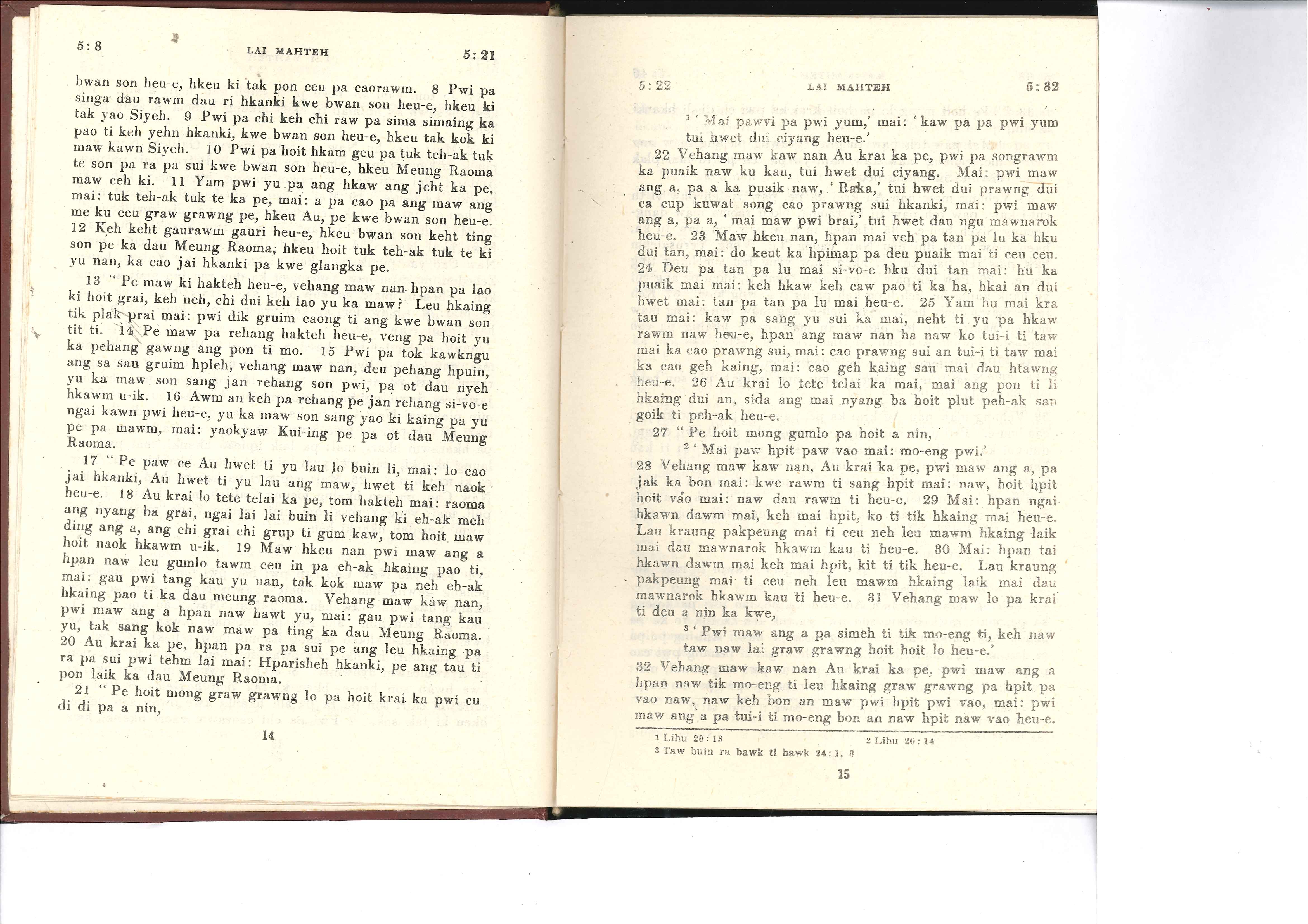 1985年佤文新约全书 马太福音 5 章 8 节到 5 章 32 节