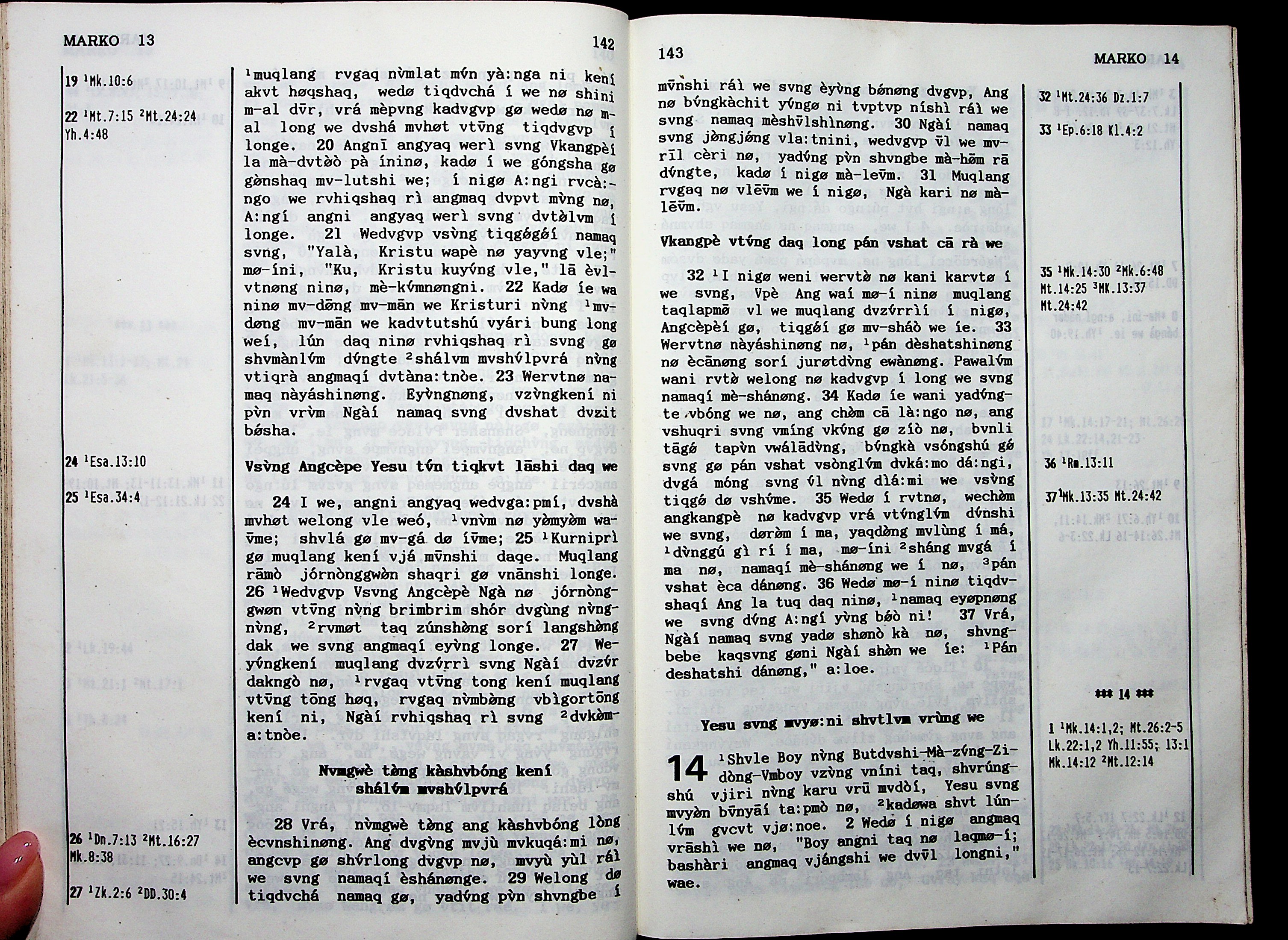 1950年独龙族新约与诗篇 马可福音 13 章 20 节到 14 章 2 节